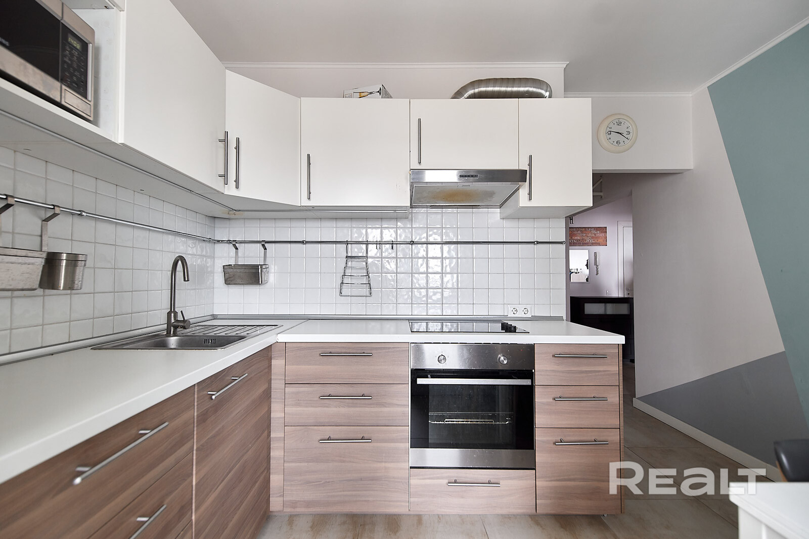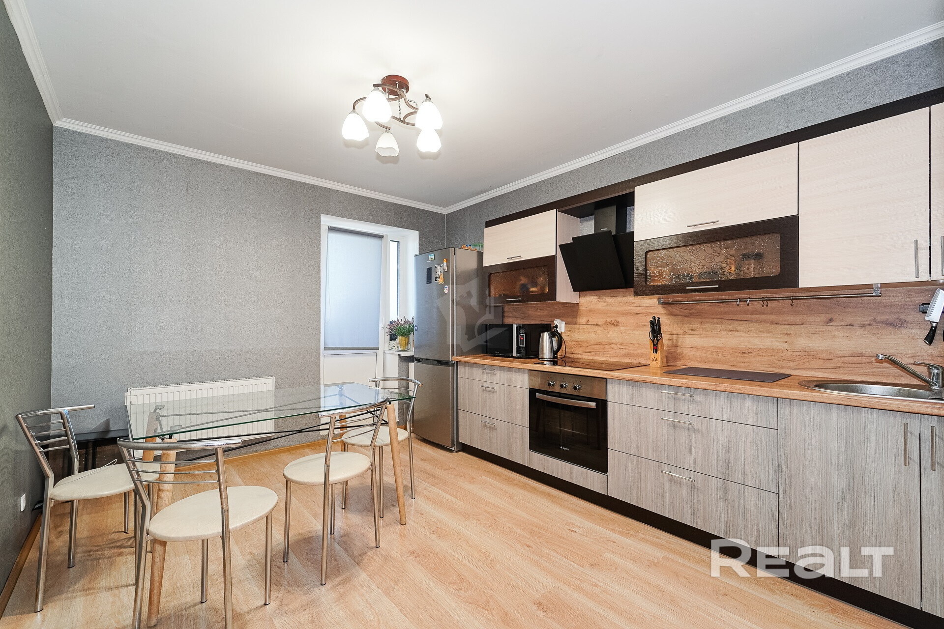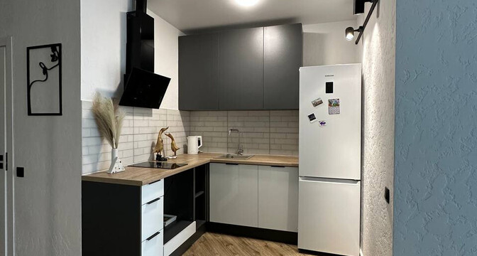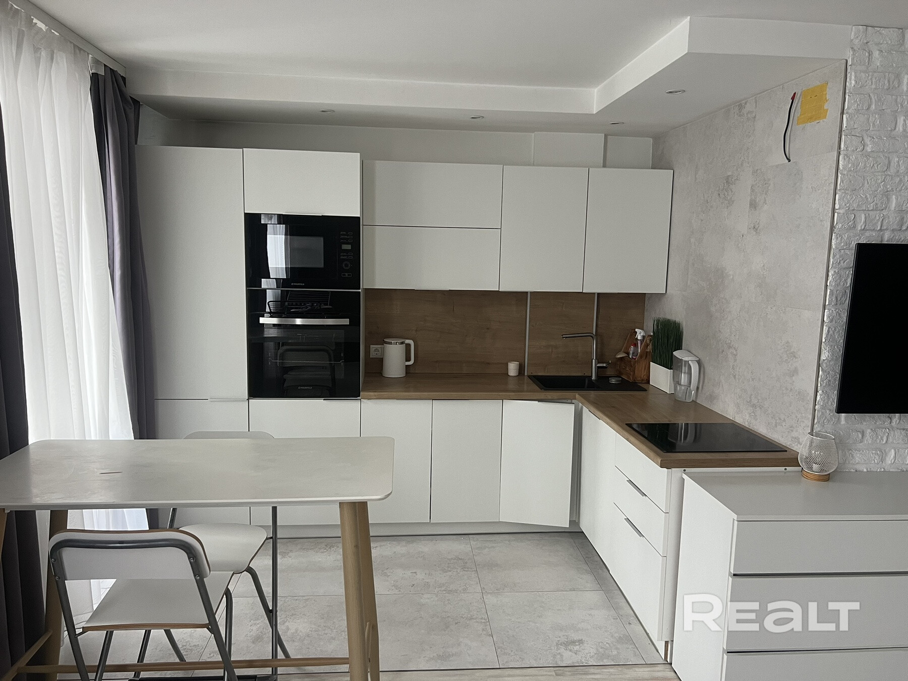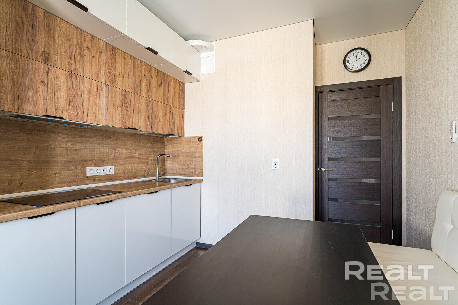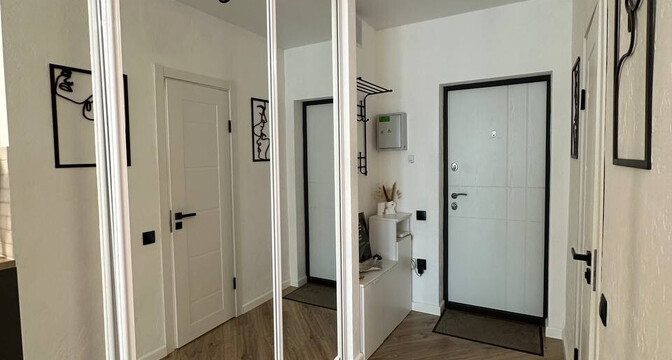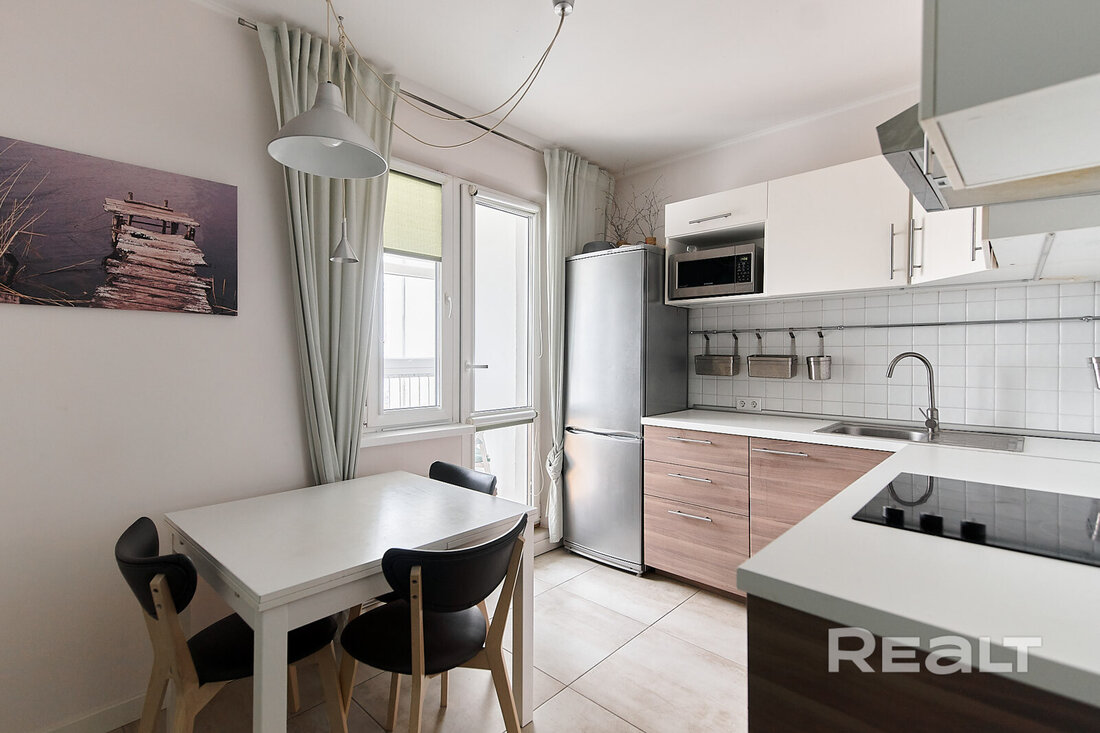 Это 19-этажный панельный дом 2015 года постройки. Квартира находится на 18-м этаже. Общая площадь — 45 квадратов, 18 из них жилые. Площадь кухни — 9 метров. Кухня, как и вся квартира, оформлена в светлых цветах. Есть выход на застекленную лоджию.