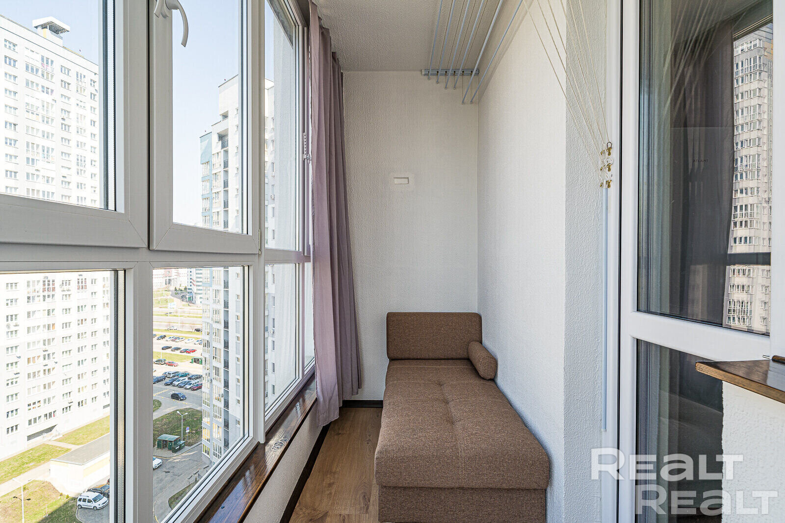 Еще один вариант — однушка недалеко от станции метро «Малиновка». Каркасно-блочный дом 2017 года постройки высотой в 19 этажей по адресу Чюрлениса, 24. Квартира находится на 13-м этаже.