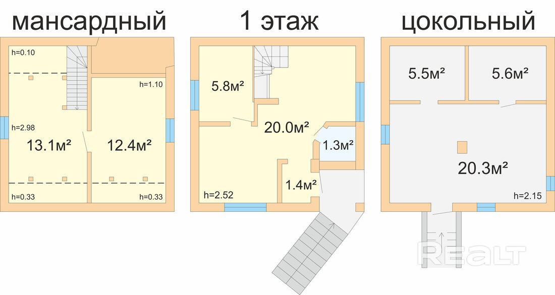 Аккуратный каменный дом насчитывает 87 квадратных метров общей площади и состоит сразу из трех уровней — цокольного, первого и мансардного этажа.