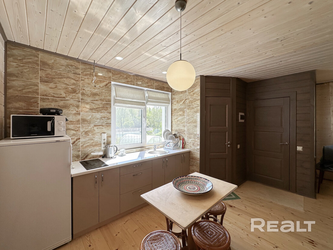 Располагается дом в садовом товариществе «Колос». Это — Минский район, 28 километров от МКАД, Молодечненское направление. К дому ведут хорошие подъездные пути. От кольцевой — 25 минут на автомобиле. Можно доехать на электричке до станции «Анусино» или «Хмелевка», оттуда — 20 минут пешком. В 15 километрах — Заславль и Минское море.