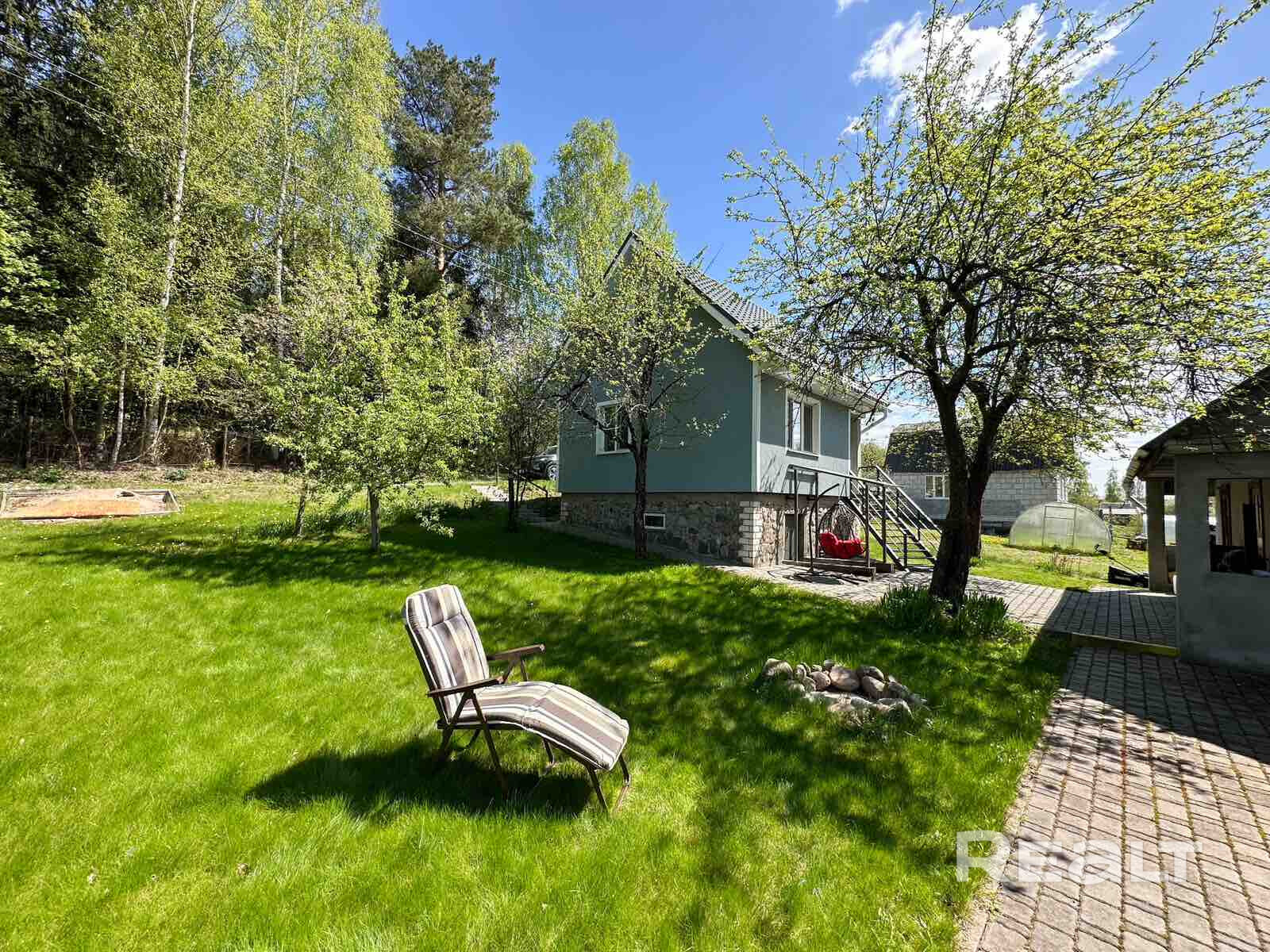 Стоит дом на ухоженном зеленом участке в 8 соток. Территория с газоном и зоной для барбекю отлично подойдет для семейного отдыха. Также тут имеется хозпостройка.