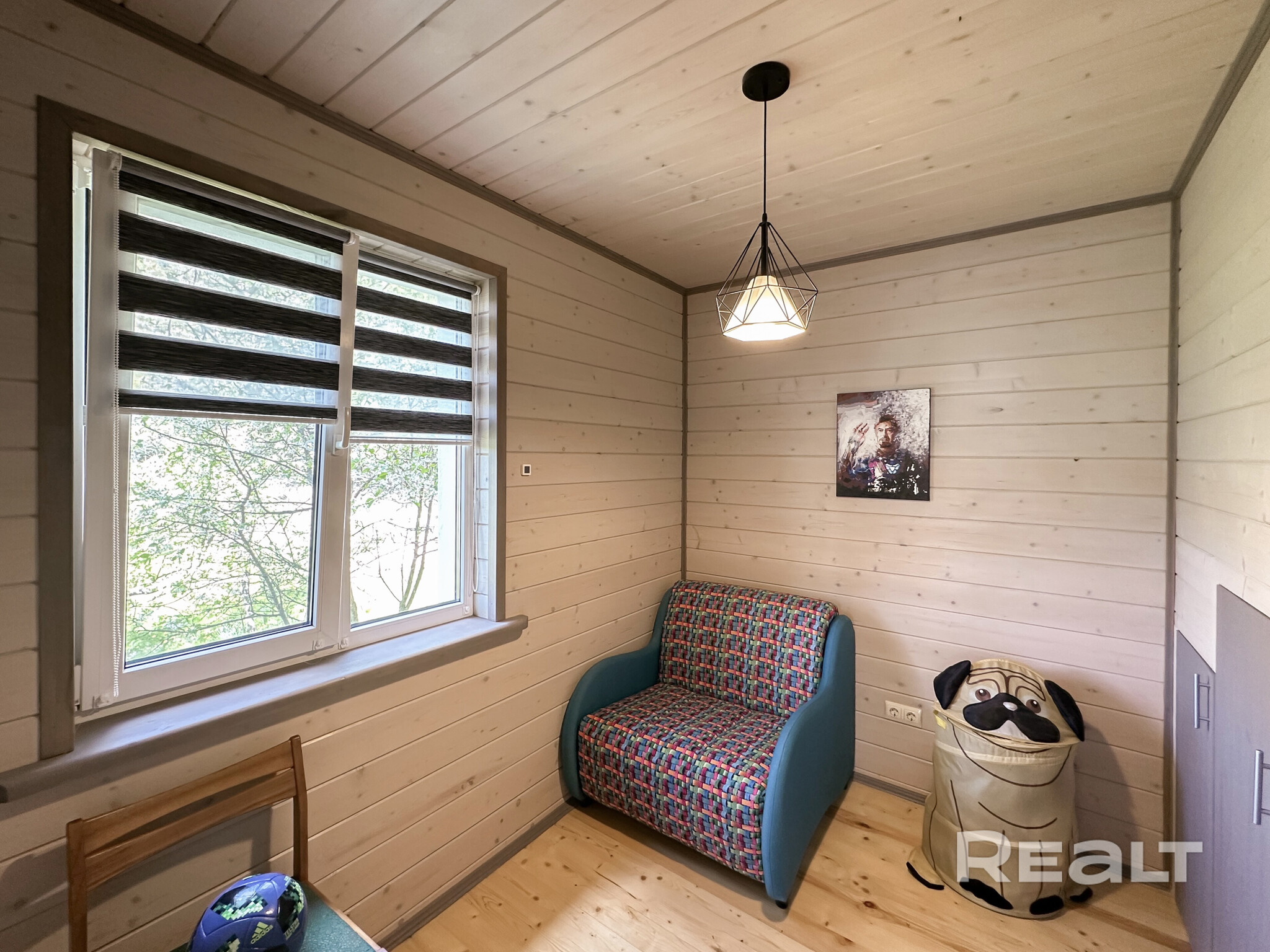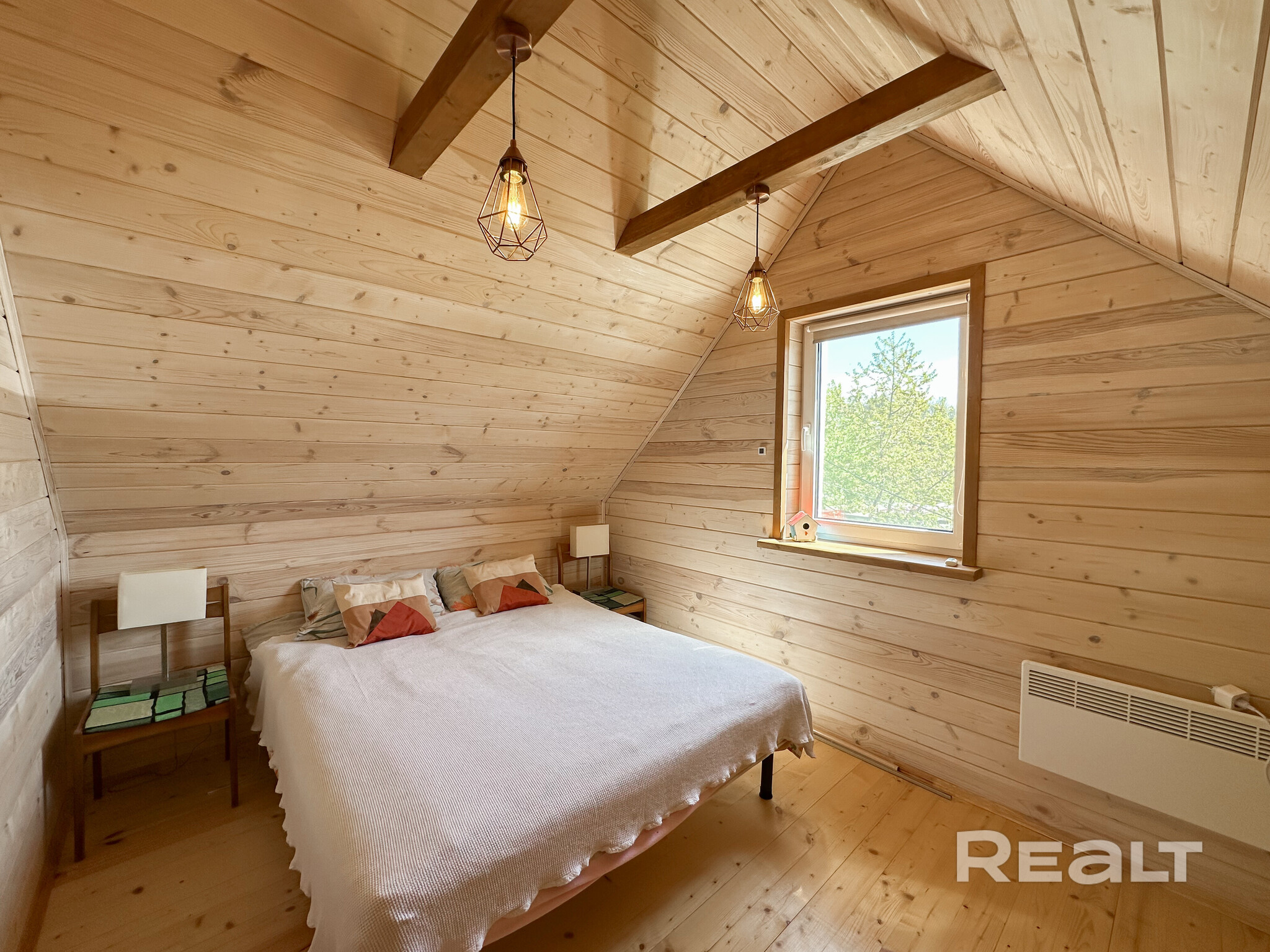 Дача может похвастаться современной отделкой с использованием светлого дерева. Комнаты уже обставлены мебелью и наполнены большим количеством света.