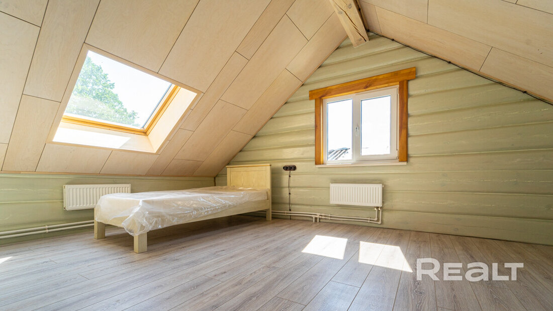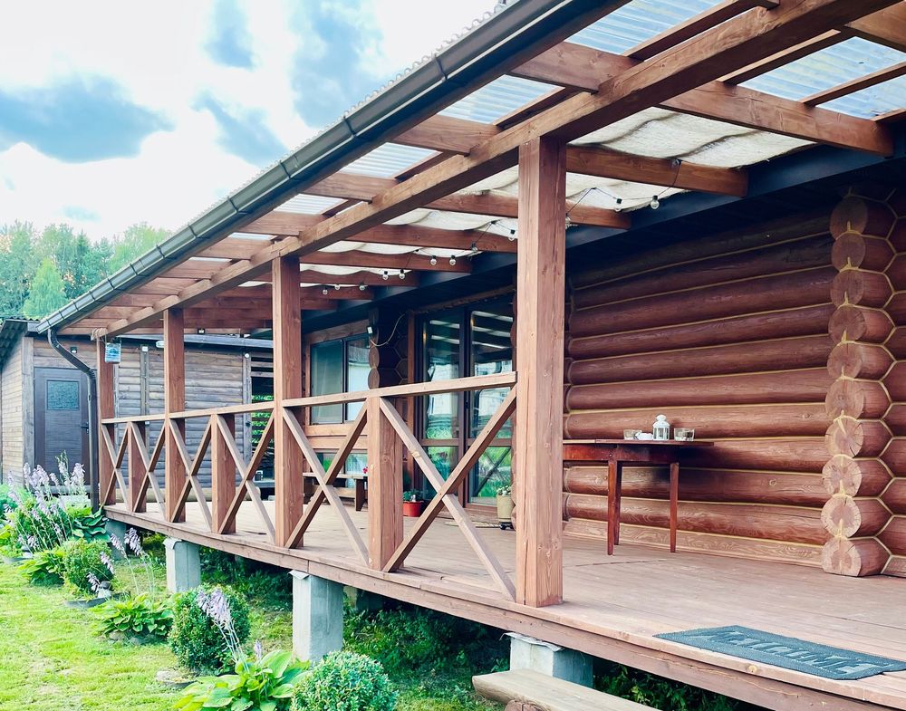 Дом здесь деревянный, с мансардным этажом и крытой террасой. Построен в 2018 году.