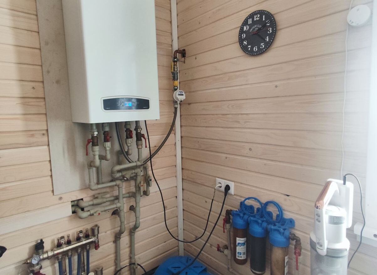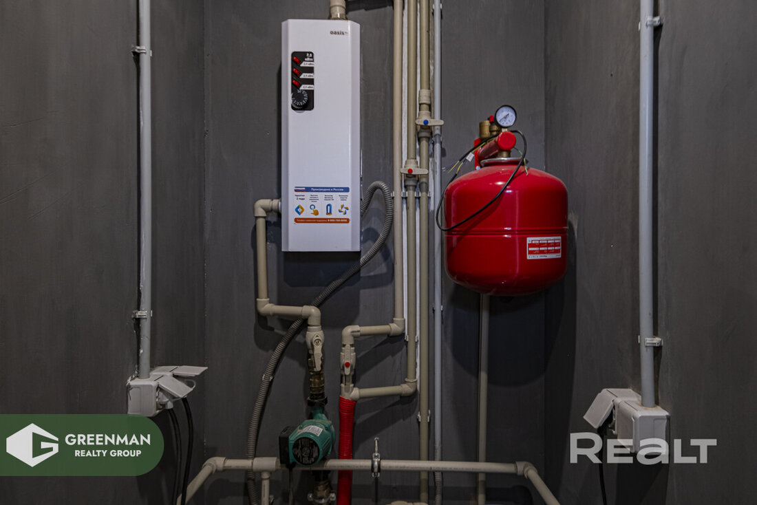 Отопление на газу, с теплыми полами на первом этаже и радиаторами на втором. Вода из колодца, канализация — септик.