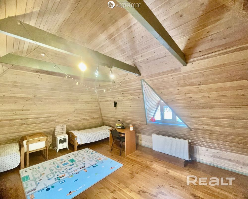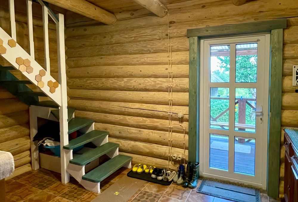 Здесь продается современный деревянный дом в стиле шале. Сруб у него из бревен большого сечения – 28-30 см. Построен в 2019 году.