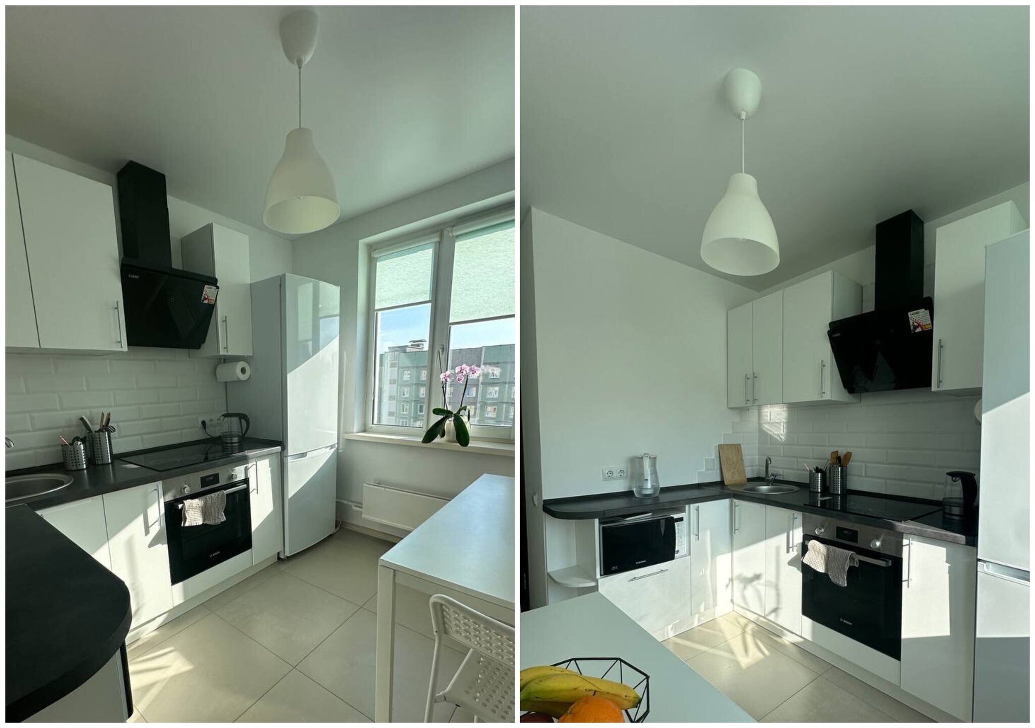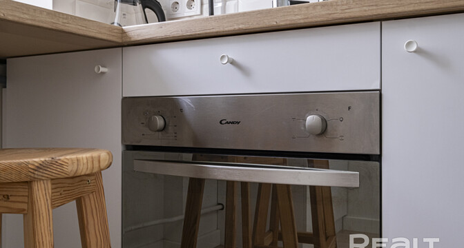 Квартира полностью готова к проживанию. Тут есть кухня со встроенной бытовой техникой: холодильником, варочной поверхностью и духовым шкафом. Остается здесь и некоторая мебель. В кухне и санузле на полу лежит плитка.