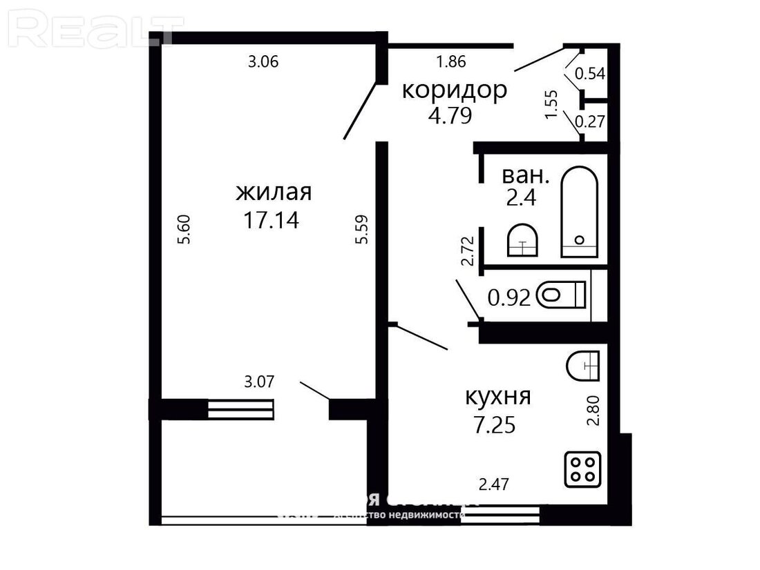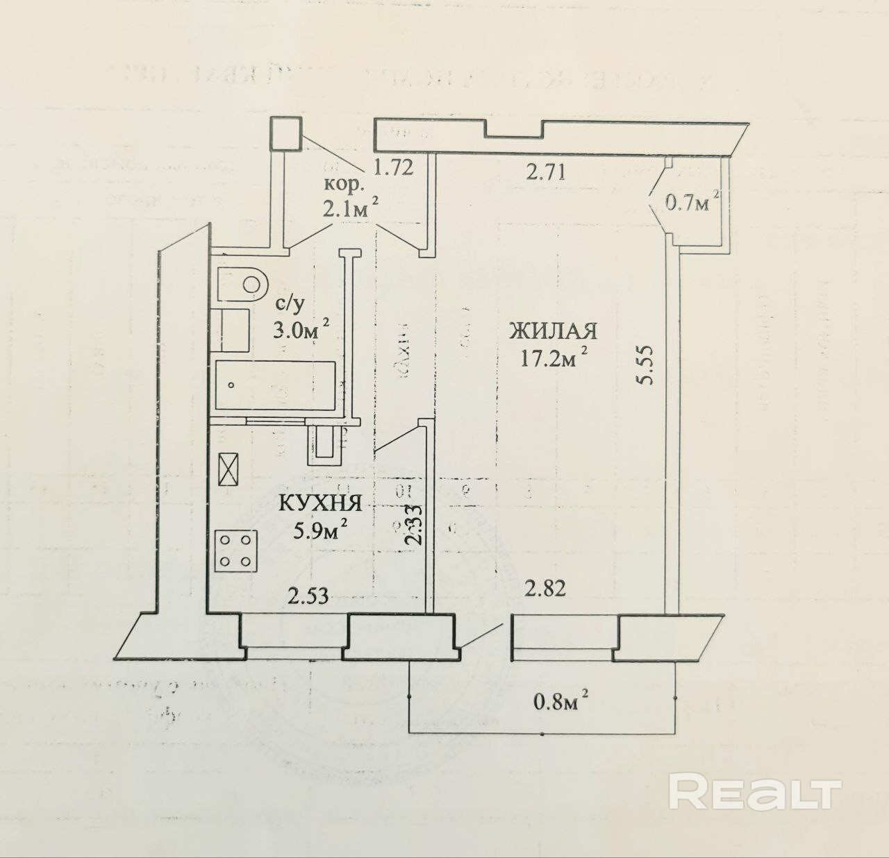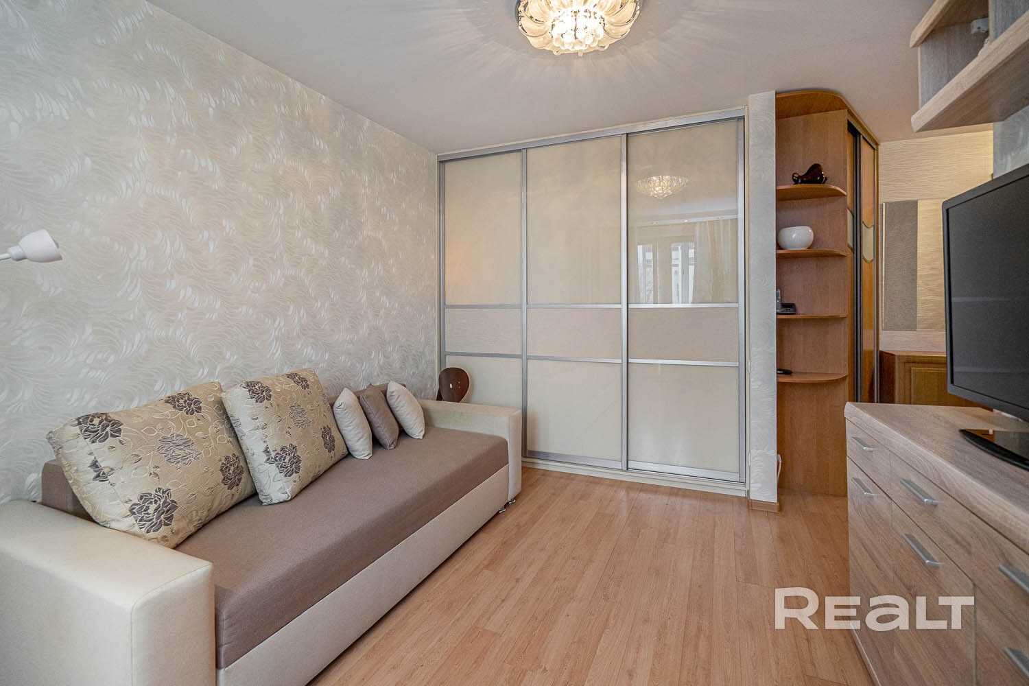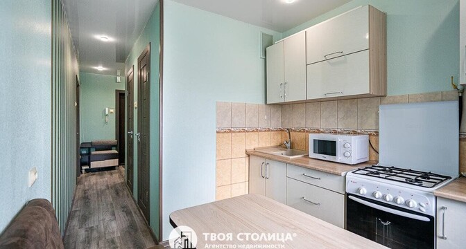 Квартира продается в пятиэтажке 1962 года на проспекте Независимости, 52. Она находится на третьем этаже и занимает 33,3 м². Площадь кухни — 5,6 м².