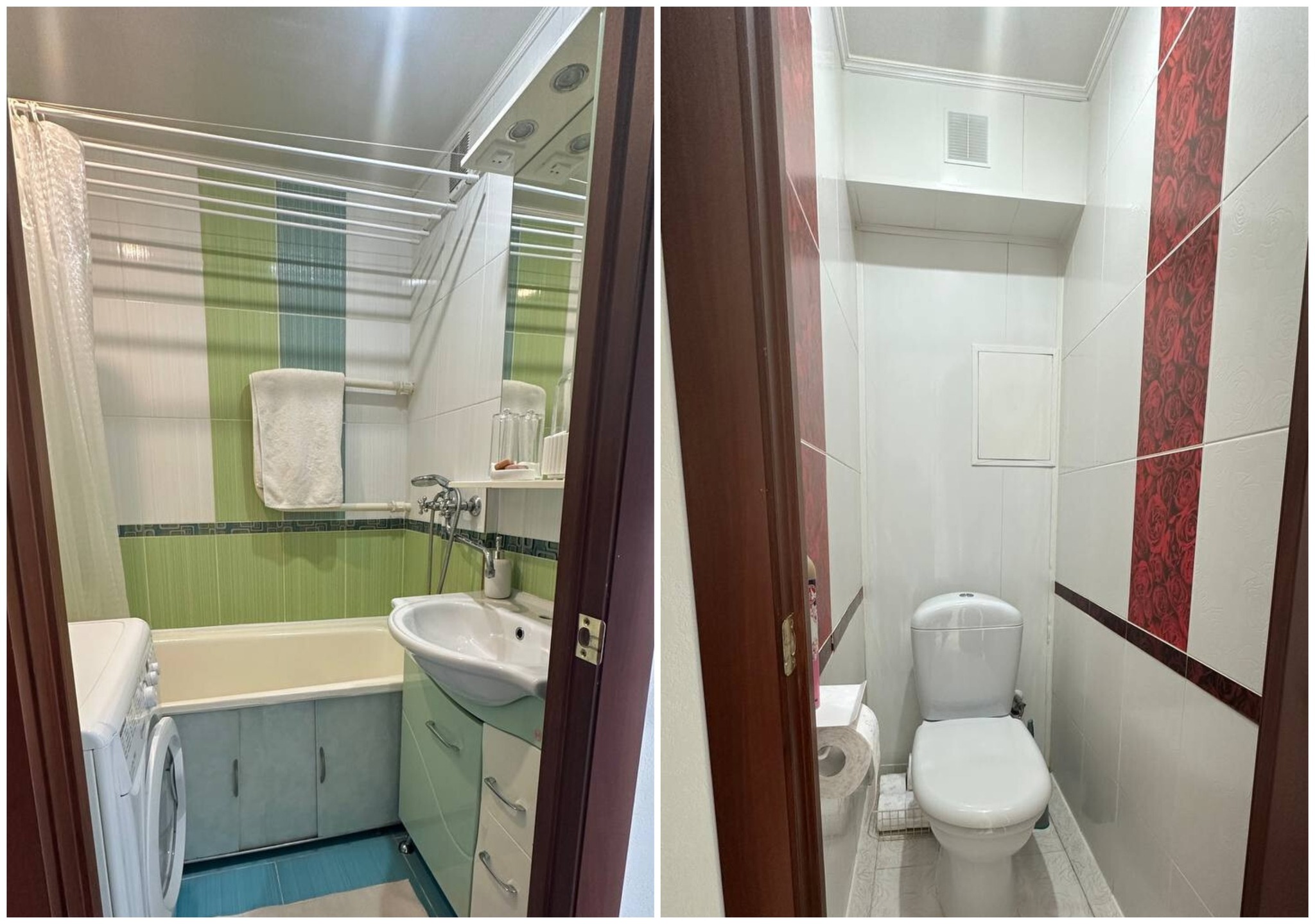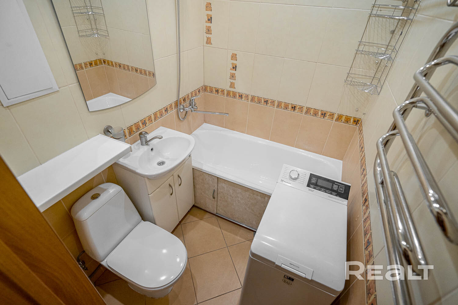 В совмещенном санузле помещается стиральная машина. Из комнаты есть выход на застекленный балкон.