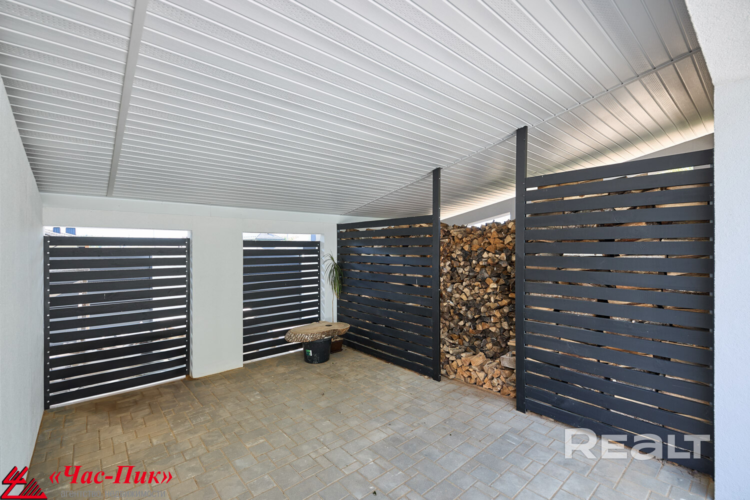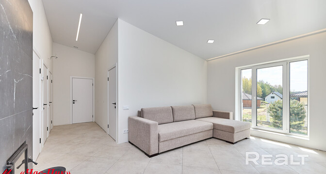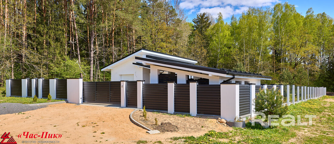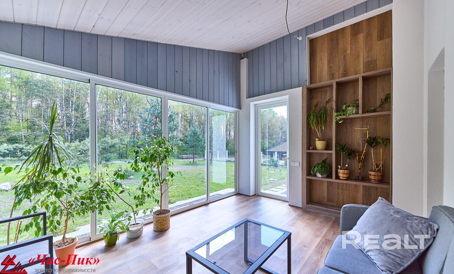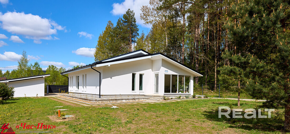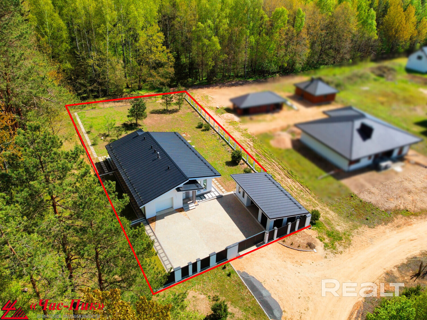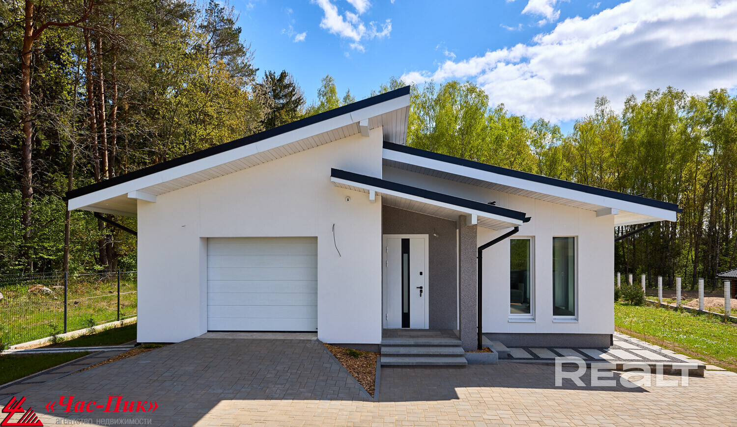 25 километров от МКАД, 15 минут до метро «Каменная Горка», коттеджный поселок. Здесь продается новый дом с чистовой отделкой и мебелью — можно заезжать и жить. Стоит недешево, но в его оснащении нет ничего копеечного: фальцевая кровля, окна в пол, серьезно утепленный фасад, печь-камин, автоматизация отопления, дорогая сантехника. А еще теплый гараж и отдельный хозблок, благоустроенный участок и настоящий лес с двух сторон. Вот подробности.