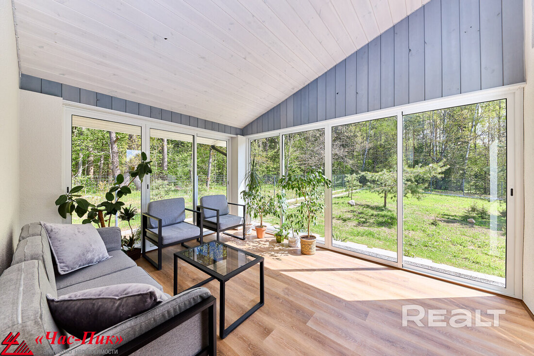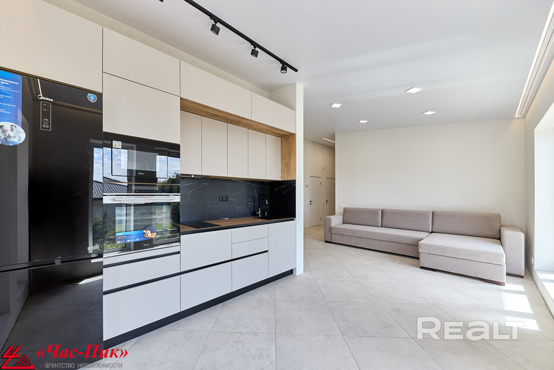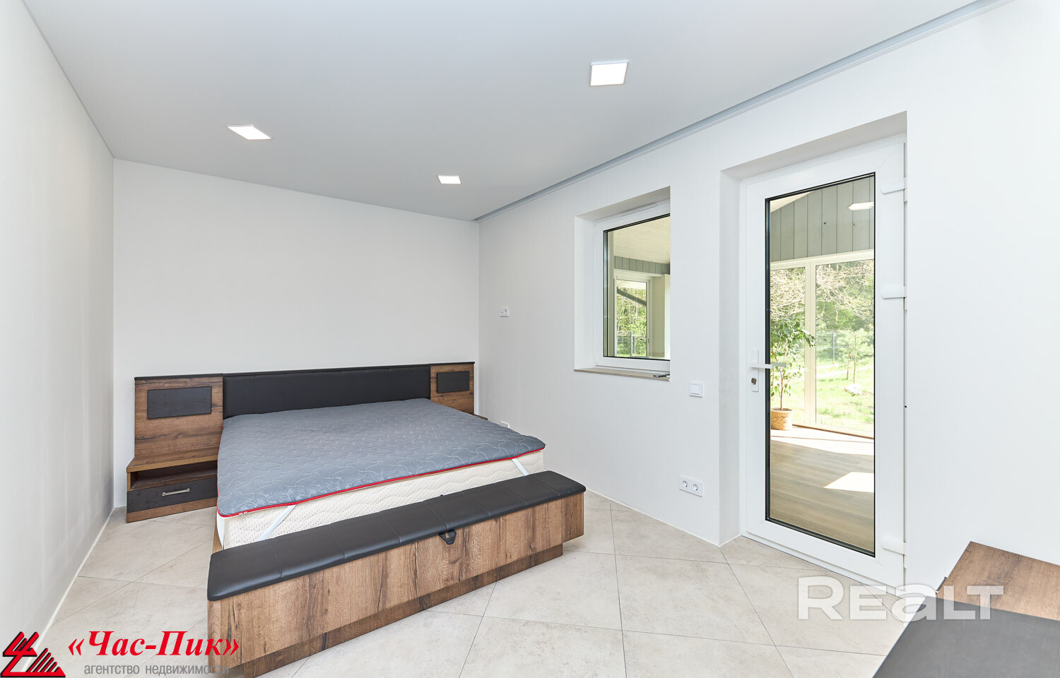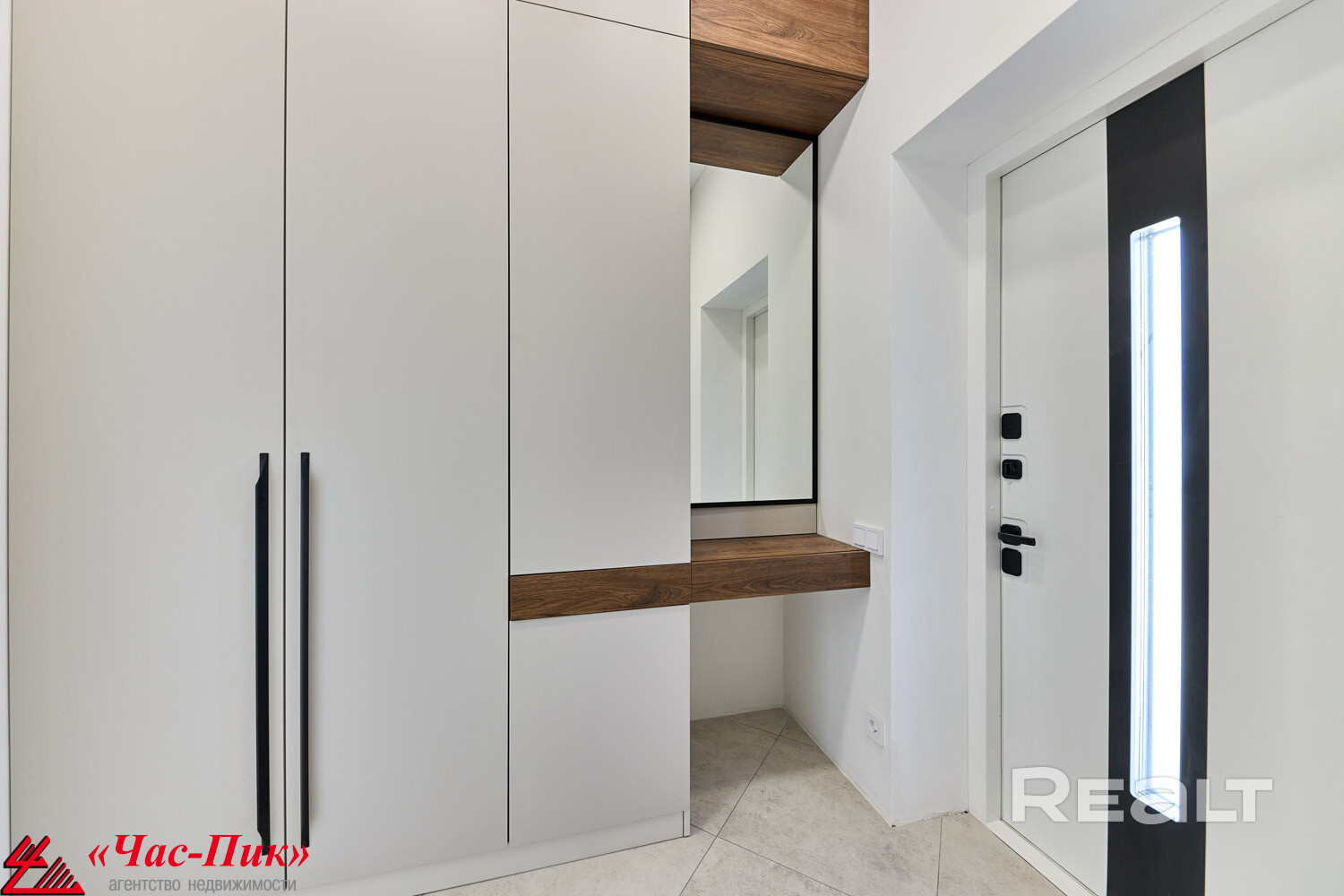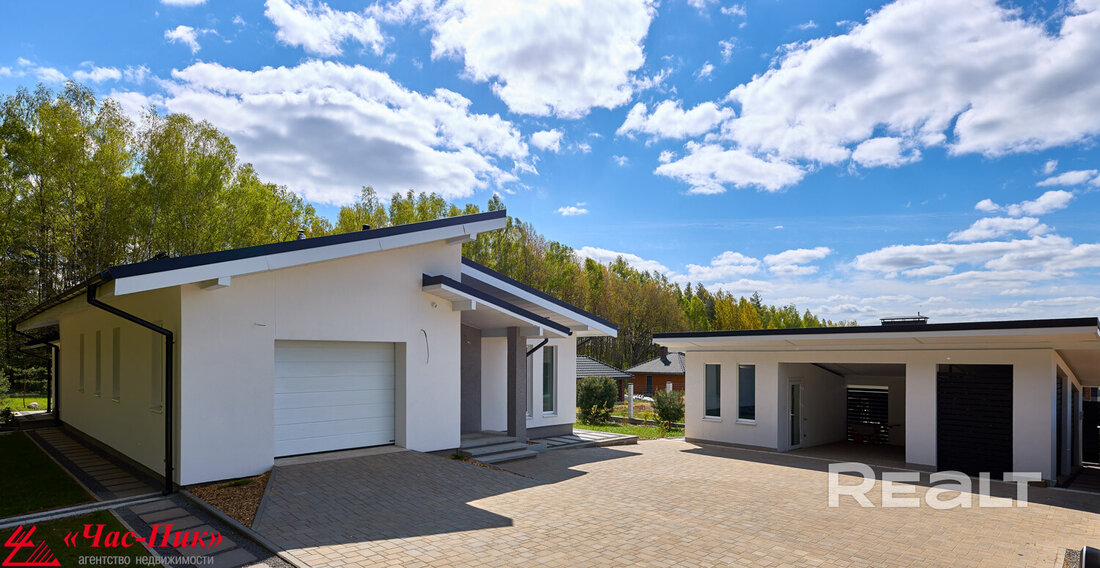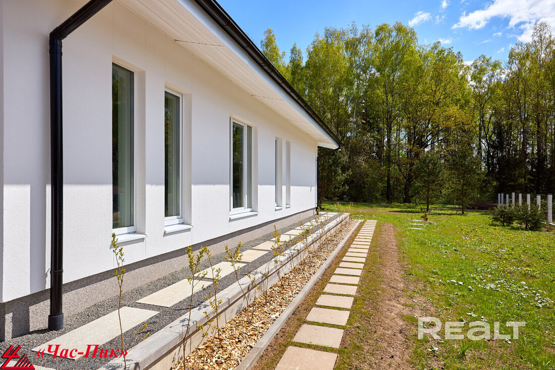 25 километров от МКАД, 15 минут до метро «Каменная Горка», коттеджный поселок. Здесь продается новый дом с чистовой отделкой и мебелью — можно заезжать и жить. Стоит недешево, но в его оснащении нет ничего копеечного: фальцевая кровля, окна в пол, серьезно утепленный фасад, печь-камин, автоматизация отопления, дорогая сантехника. А еще теплый гараж и отдельный хозблок, благоустроенный участок и настоящий лес с двух сторон. Вот подробности.