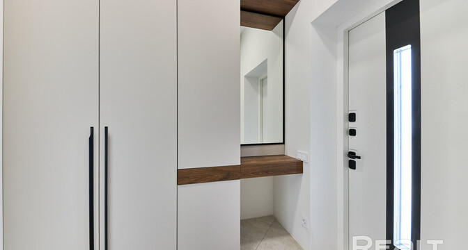 Интерьер нейтральный, основной цвет белый. Такое пространство можно легко изменить под свои вкусы, не прибегая к дорогому ремонту.