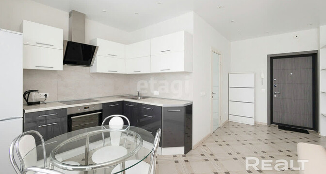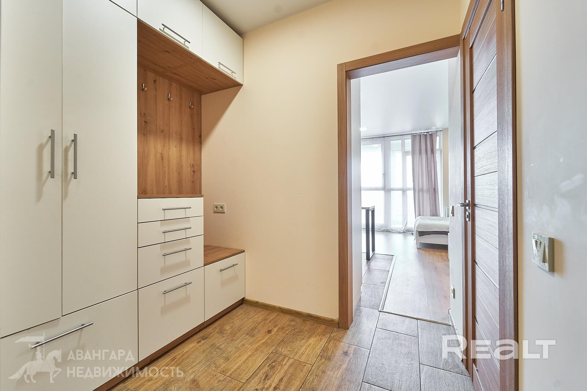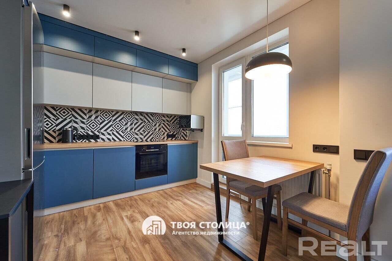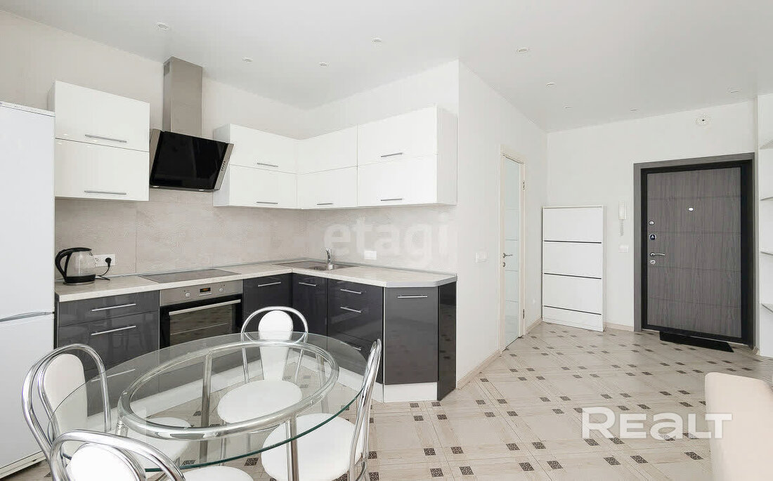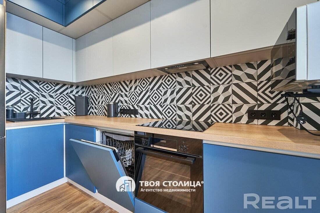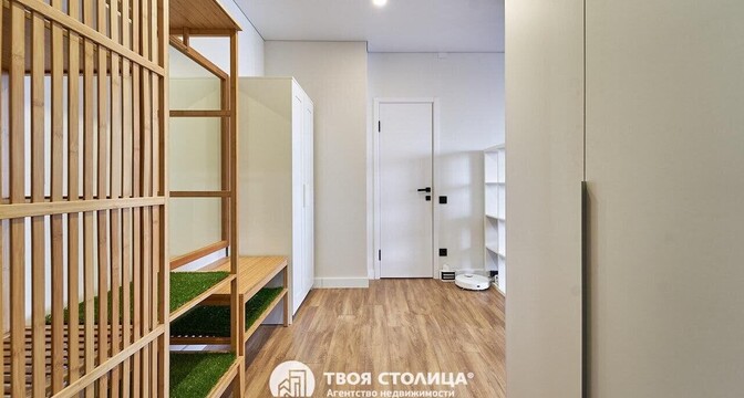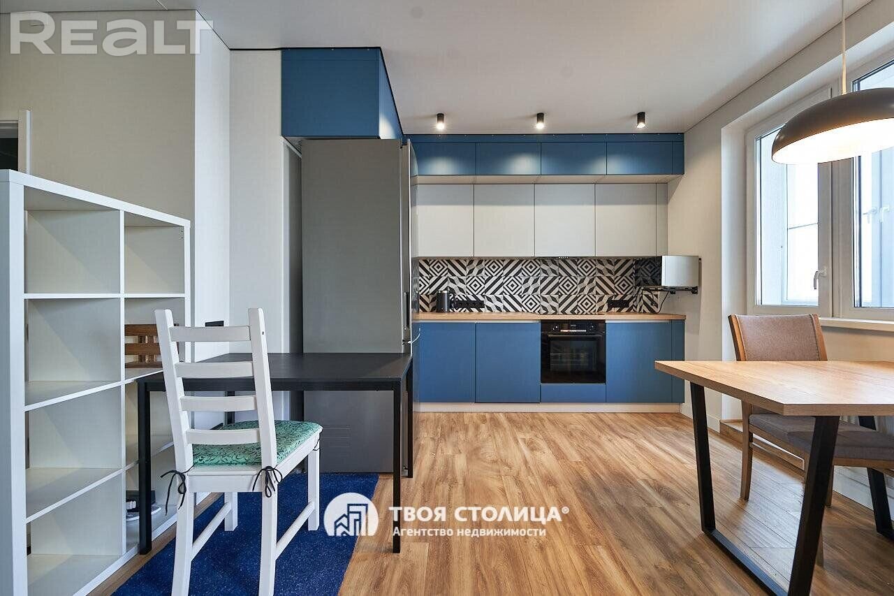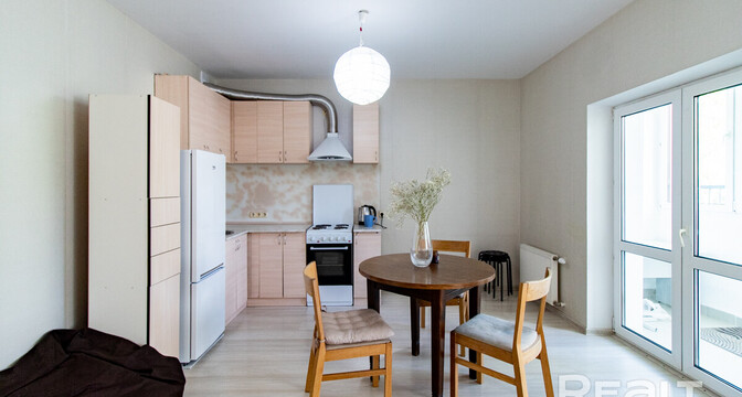 Еще один вариант из Минск-Мира — студия с классическим интерьером и необычной кухней. Находится на 22-м этаже 25-этажного дома «Фиджи» в квартале «Тропические острова». Дом сдан в 2023 году и расположен по адресу Жореса Алферова, 10.