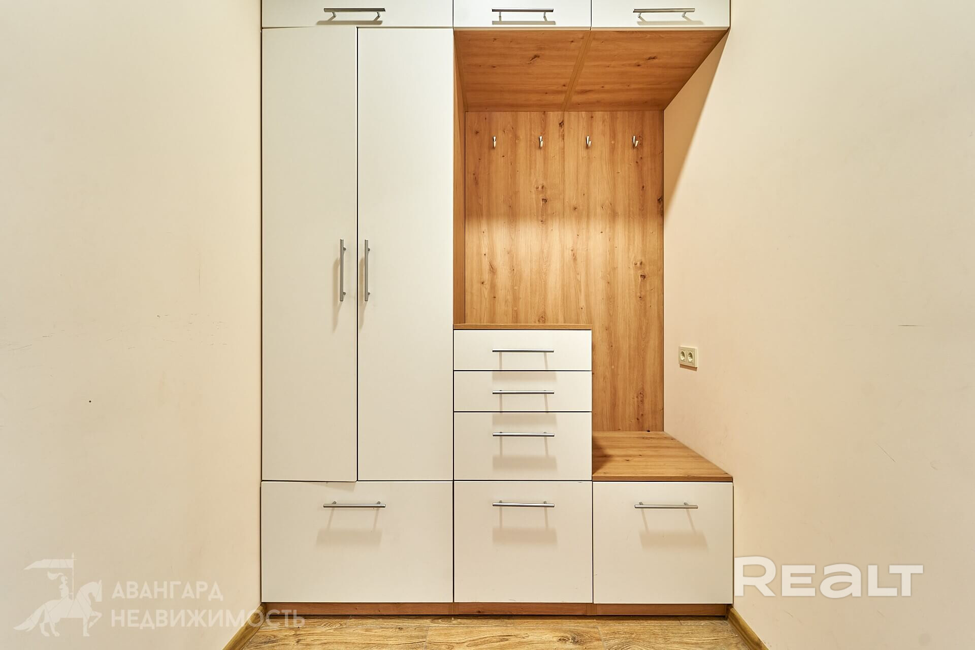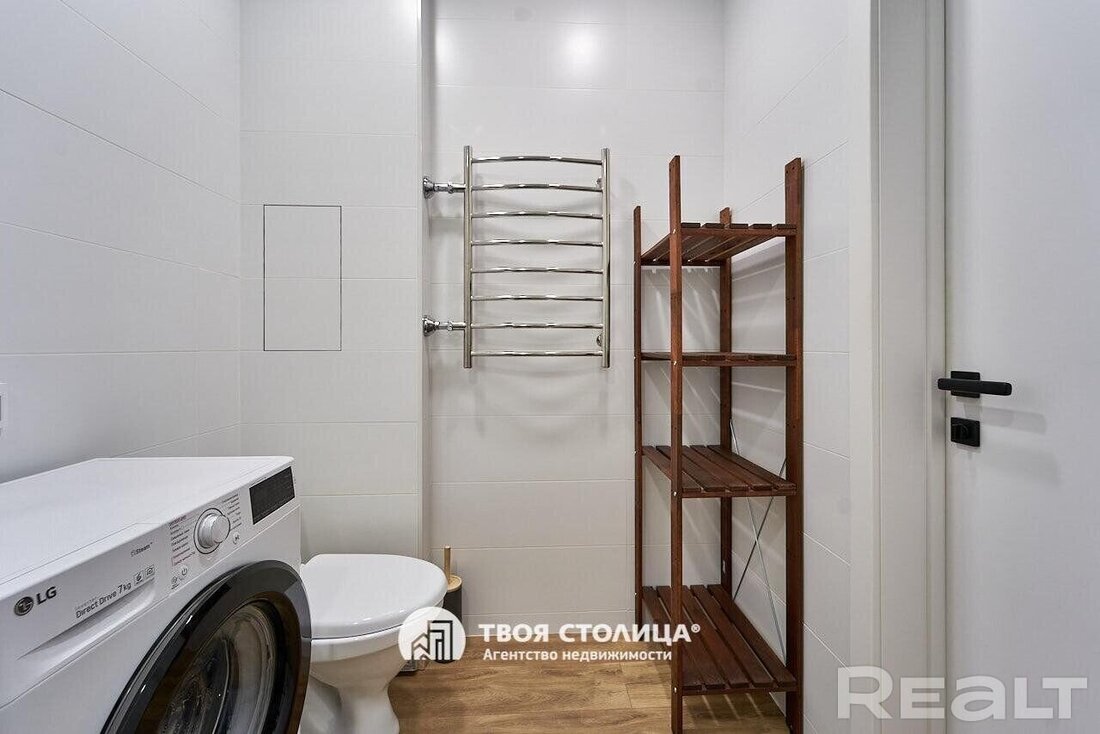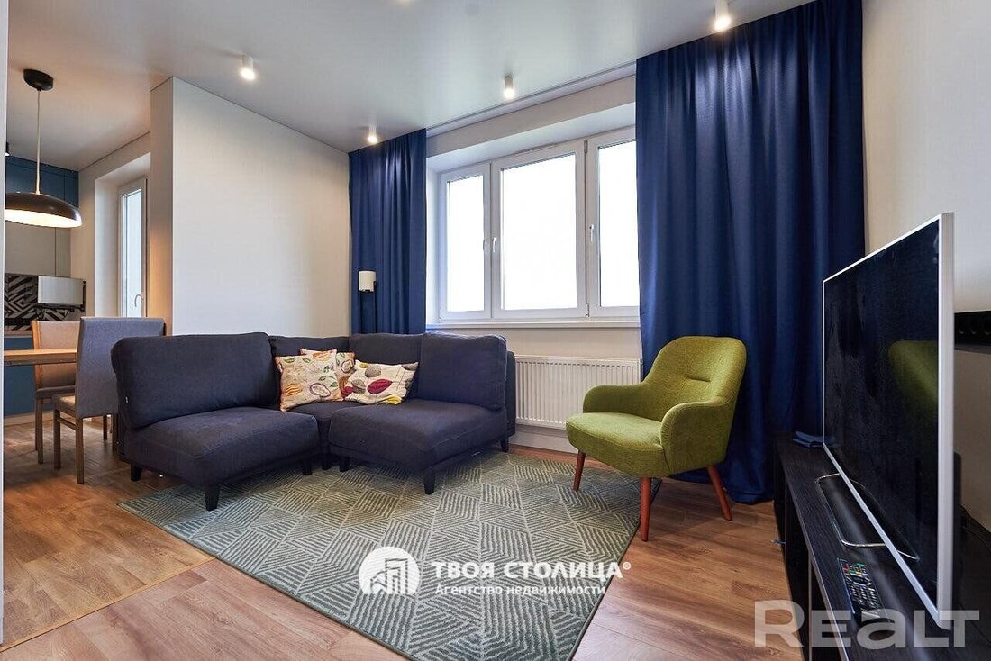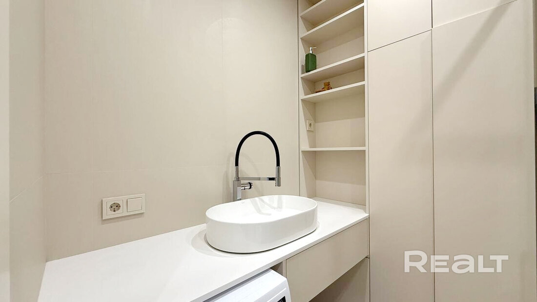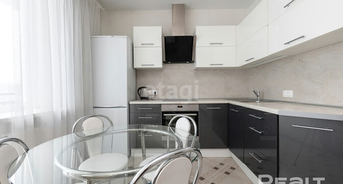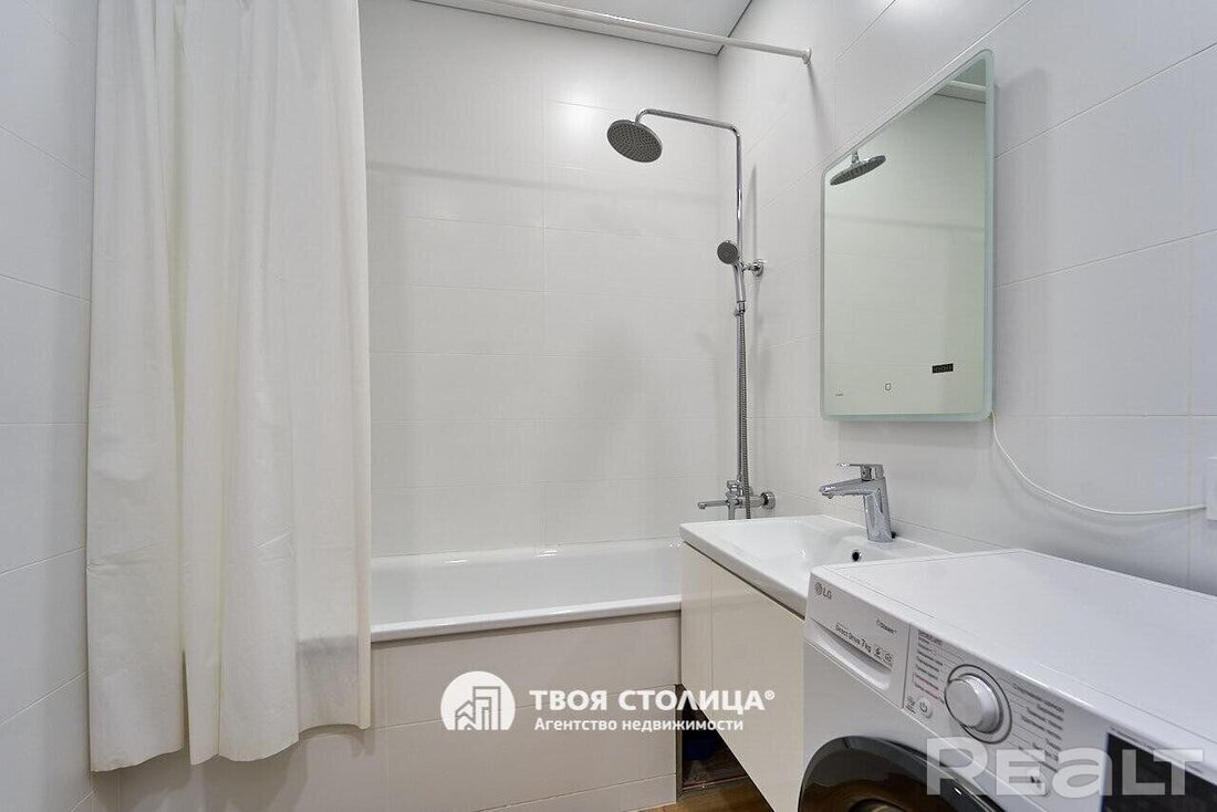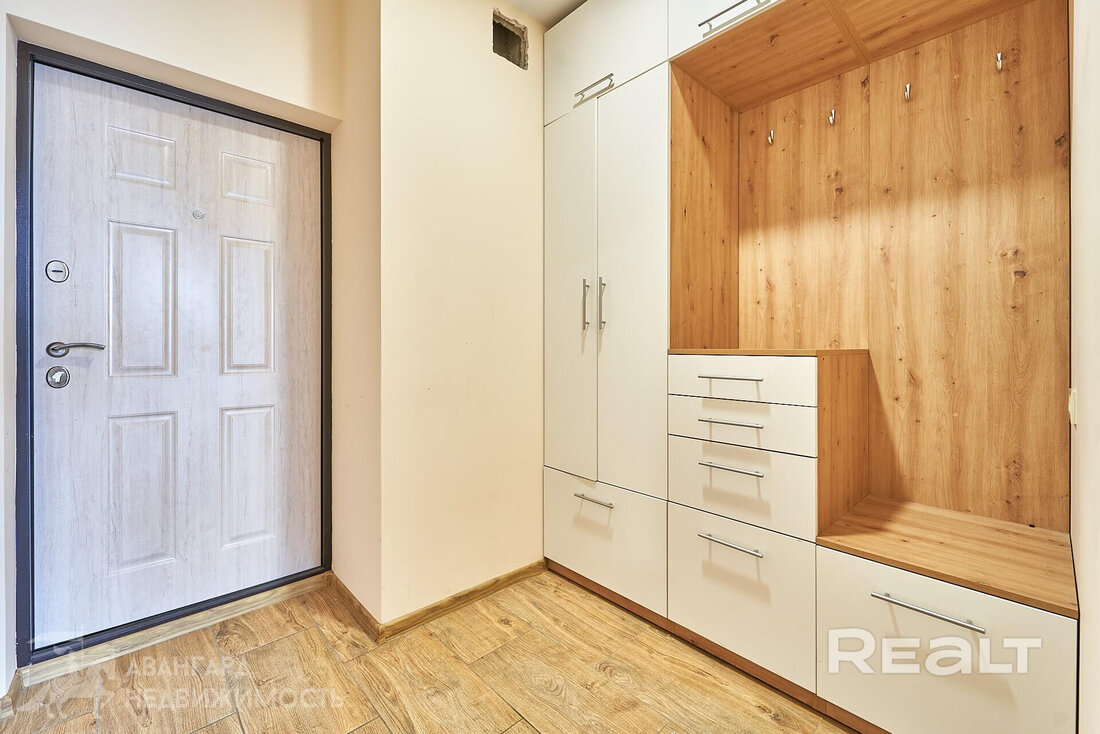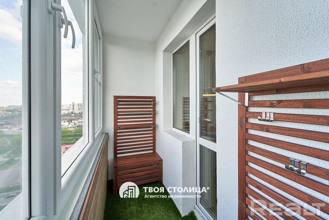 Еще один вариант из Минск-Мира — студия с классическим интерьером и необычной кухней. Находится на 22-м этаже 25-этажного дома «Фиджи» в квартале «Тропические острова». Дом сдан в 2023 году и расположен по адресу Жореса Алферова, 10.
