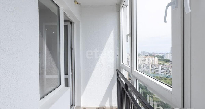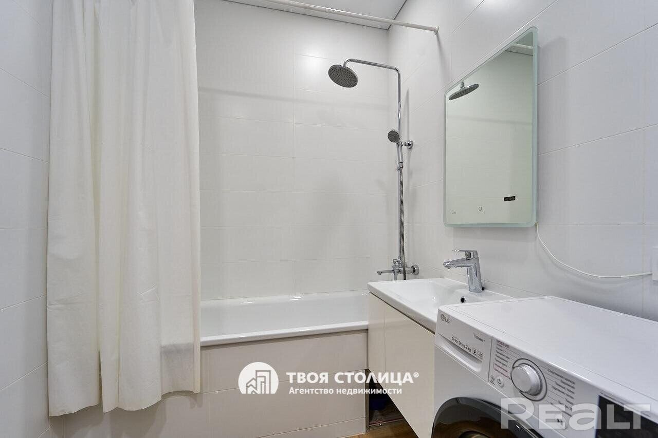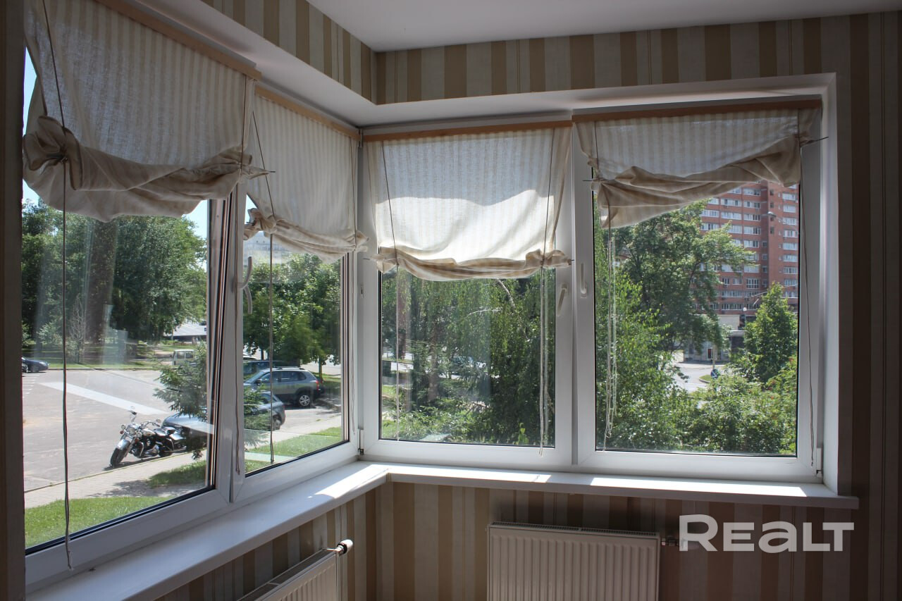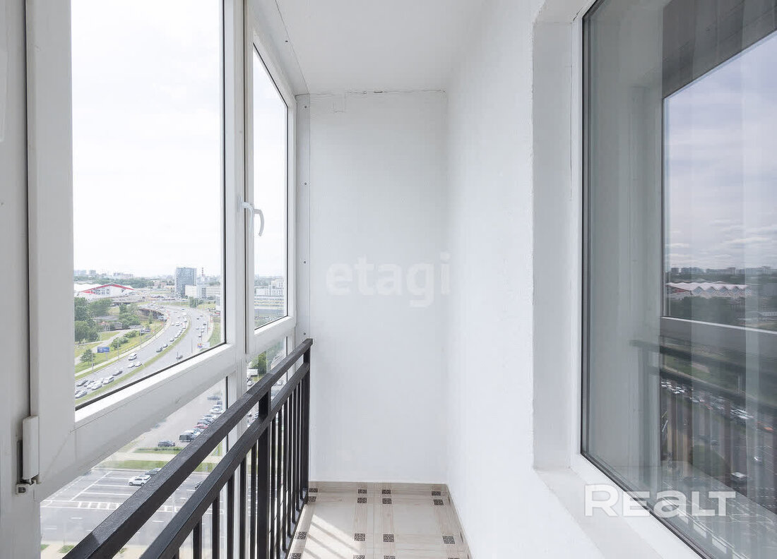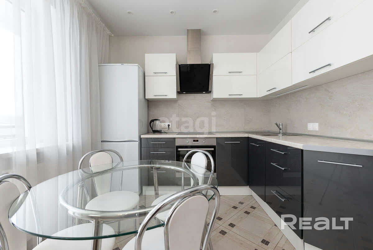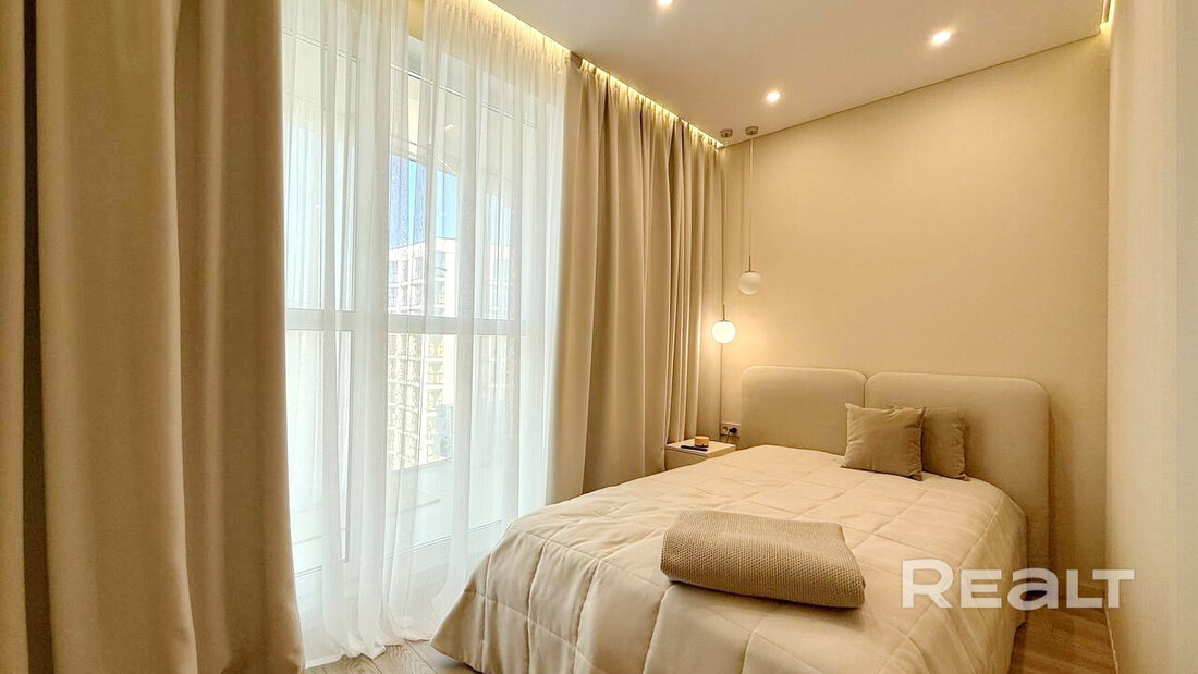 Квартира на 16-м этаже монолитного 19-этажного дома 2014 года постройки по адресу Репина, 4. Это ЖК «Чайковский». До станции метро «Молодежная» около 10-15 минут пешком. Одну остановку можно подъехать на маршрутке. До проспекта Машерова — буквально один дом.