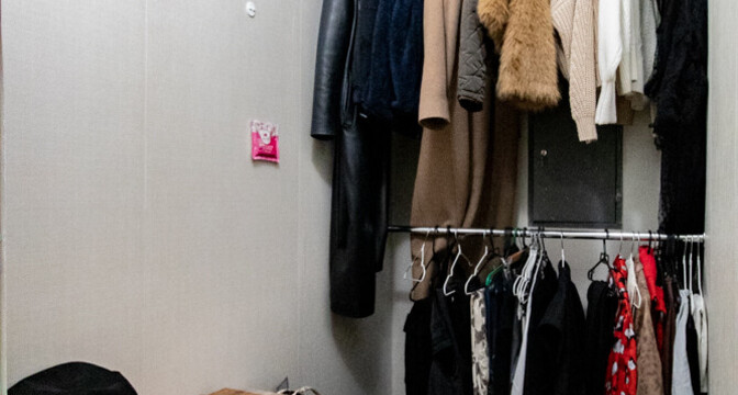 Студия находится на 23-м этаже 25-этажного дома. Общая площадь квартиры — 33 квадрата. У входа оборудован большой шкаф. В кухне из техники есть посудомоечная машина, духовой шкаф, холодильник и варочная панель.