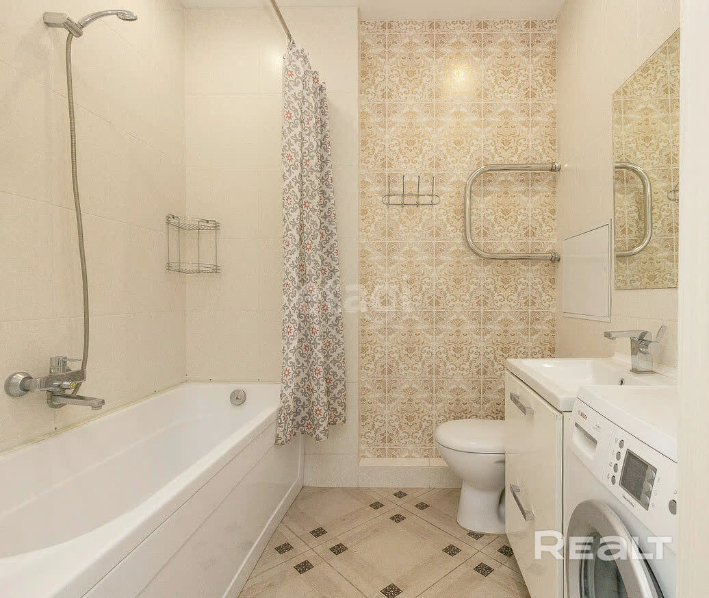 В совмещенном санузле установлена ванна. Есть стиральная машина.