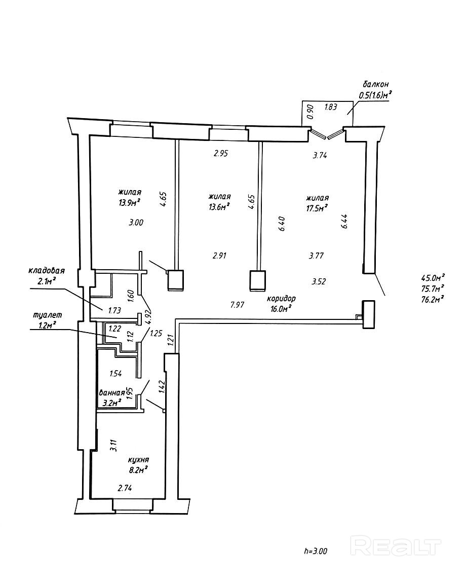 Стоимость квадратного метра составляет 2 717 долларов. Квартира обойдется в 207 тысяч долларов.