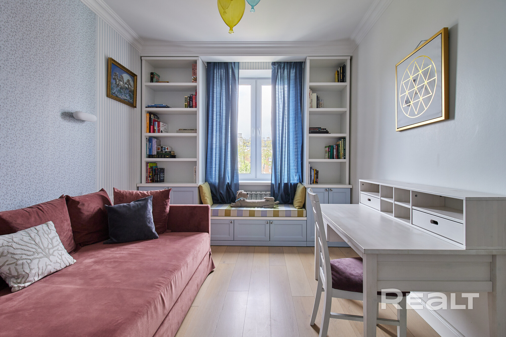 Нравится жить в исторических зданиях, в центре города, иметь высокие потолки и просторные комнаты? Нашли в базе Realt сталинку с отличным ремонтом. Она полностью готова к проживанию: обставлена мебелью и техникой. Интерьер получился интересным за счет ярких деталей. Взгляните на нее и оцените сами.