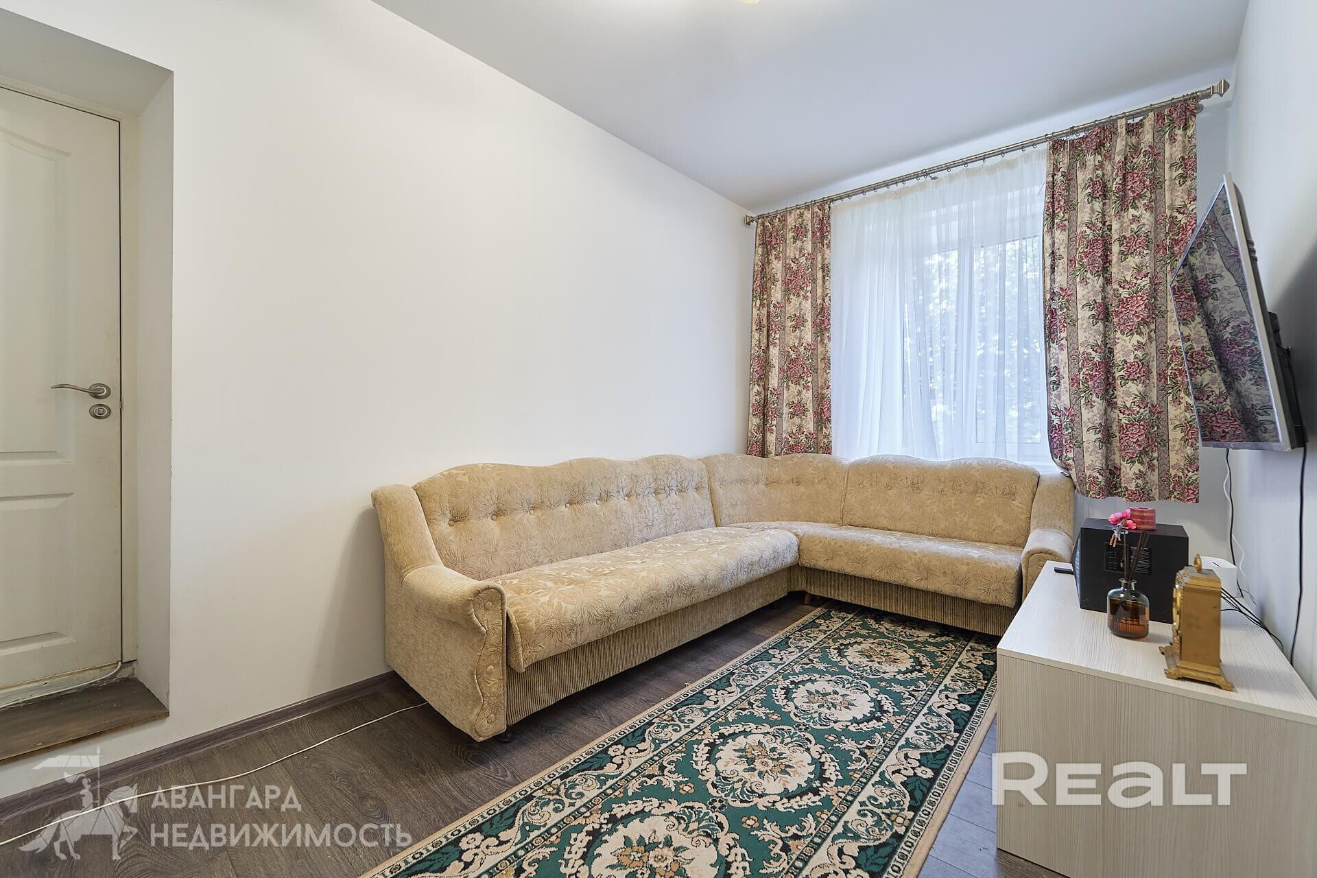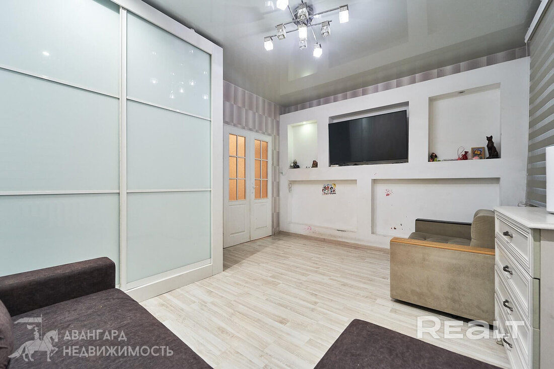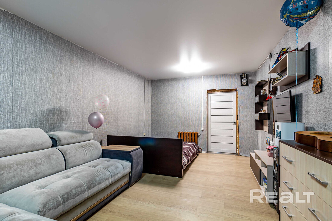 Площадь квартиры — 38 квадратов, жилая — 25, кухня — 9 метров. 37,7 кв.м., жилая — 25,3 кв.м. Потолки — около трех метров. На полу ламинат, потолки натяжные. Мебель продавец готов оставить по согласованию.