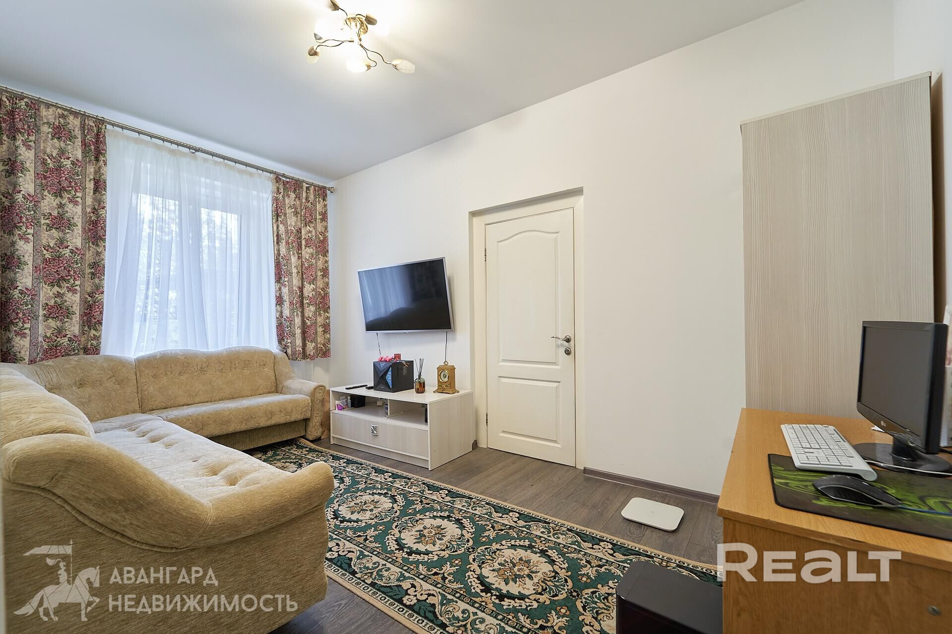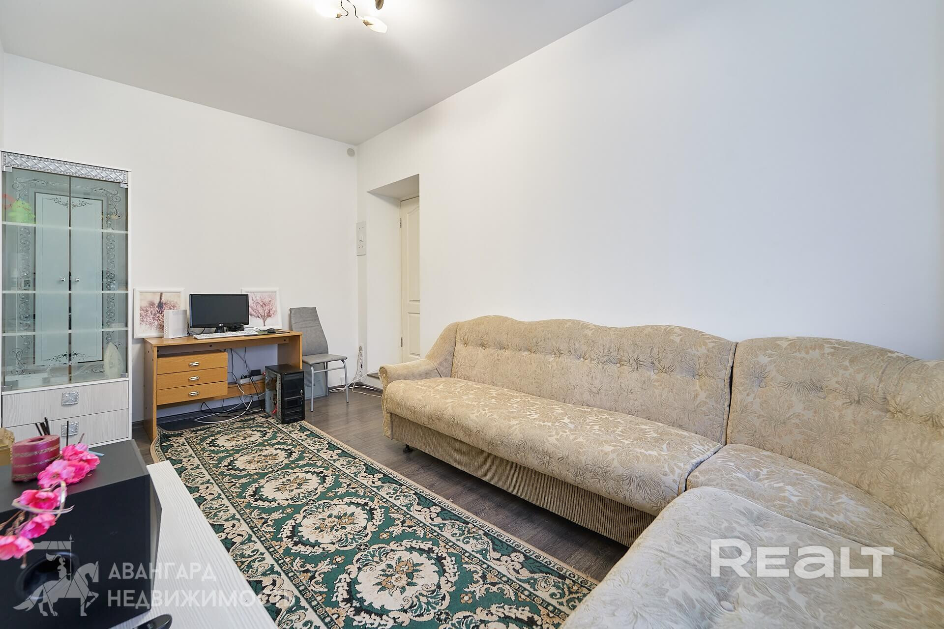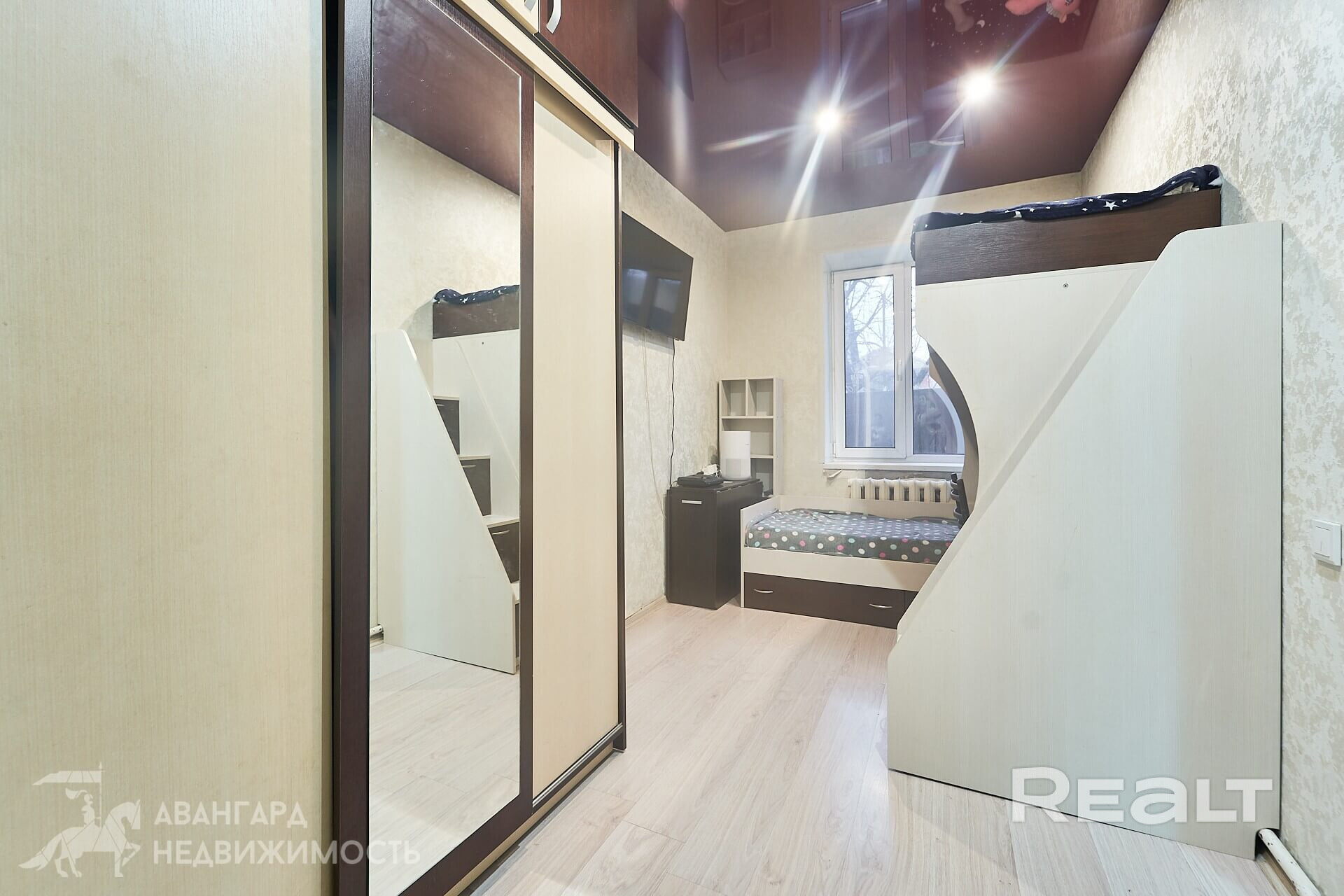 Площадь квартиры — 38 квадратов, жилая — 25, кухня — 9 метров. 37,7 кв.м., жилая — 25,3 кв.м. Потолки — около трех метров. На полу ламинат, потолки натяжные. Мебель продавец готов оставить по согласованию.