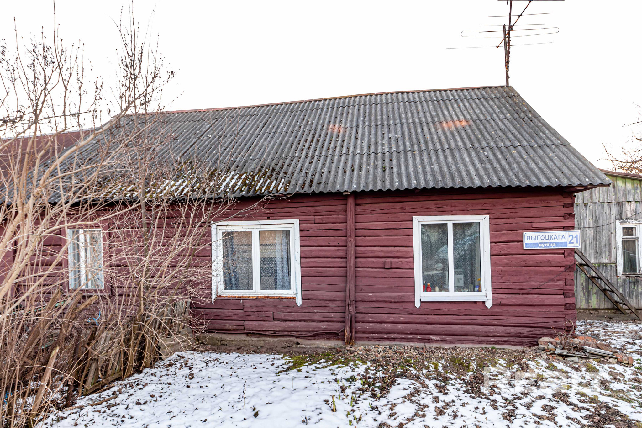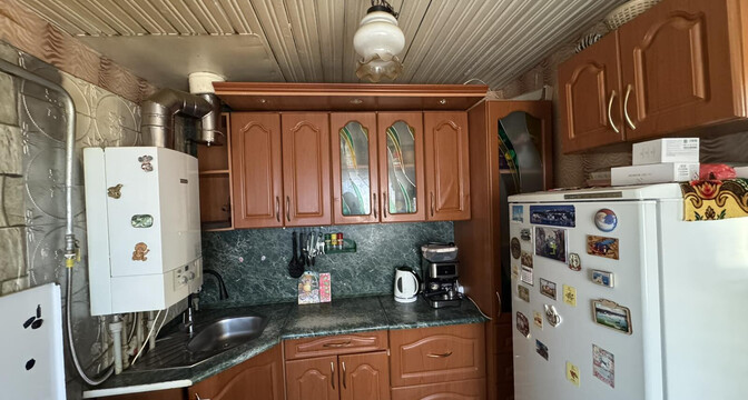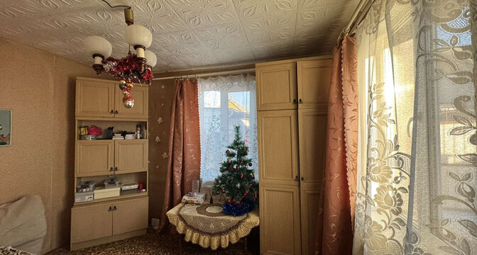 Бревенчатый дом построен в 1971 году. Он расположен на участке в 5 соток, где растут деревья и кустарники. Общая площадь изолированной квартиры в доме — 48 квадратов, жилая — 36, кухня — 7 квадратов. В доме центральное отопление. В совмещенном санузле установлена душевая кабина. Есть бойлер и стиральная машина.