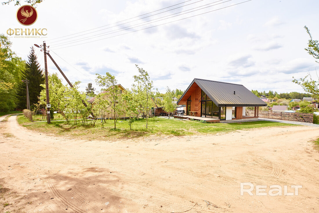Располагается дом в садовом товариществе «Вязы». Это — Воложинский район, 30 километров от МКАД, Молодечненское направление. СТ — обжитое, многие здесь живут круглогодично. К дому ведут хорошие подъездные пути.