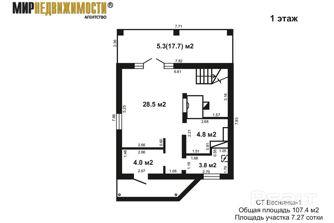 Располагается дом в садовом товариществе «Веснянка-1». Это — Минский район, Острошицко-Городокский сельсовет, 17 километров от МКАД, Логойское направление. Само СТ — обжитое, многие здесь живут круглогодично. К дому ведут хорошие подъездные пути.