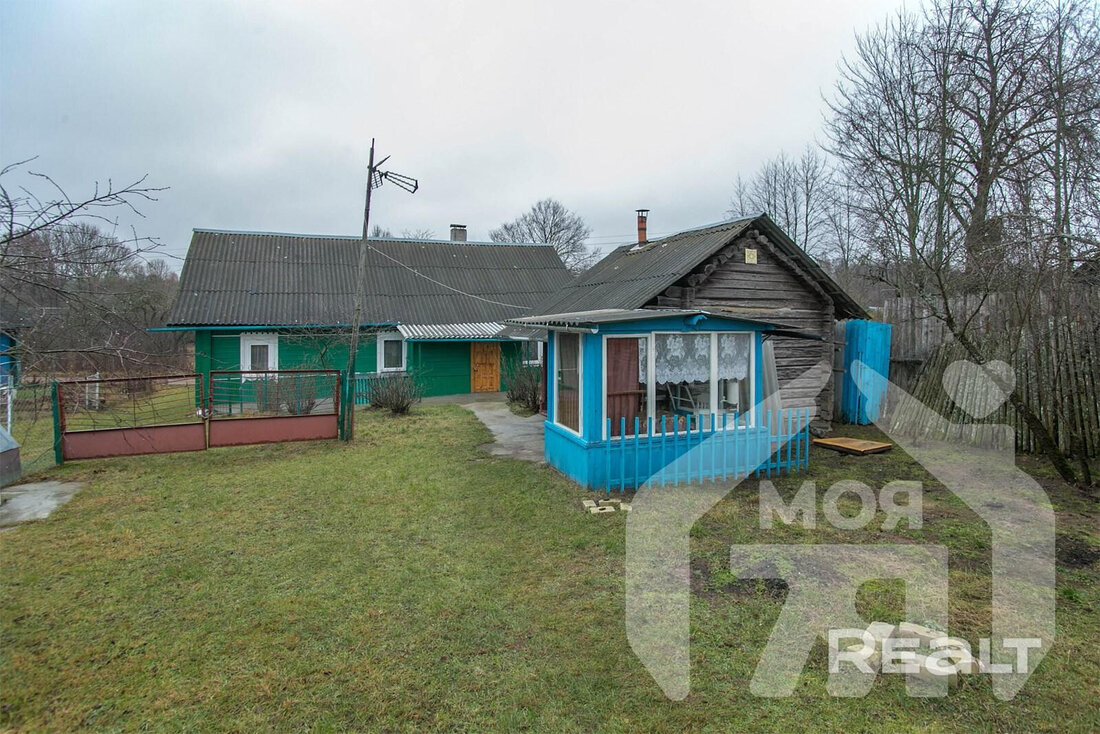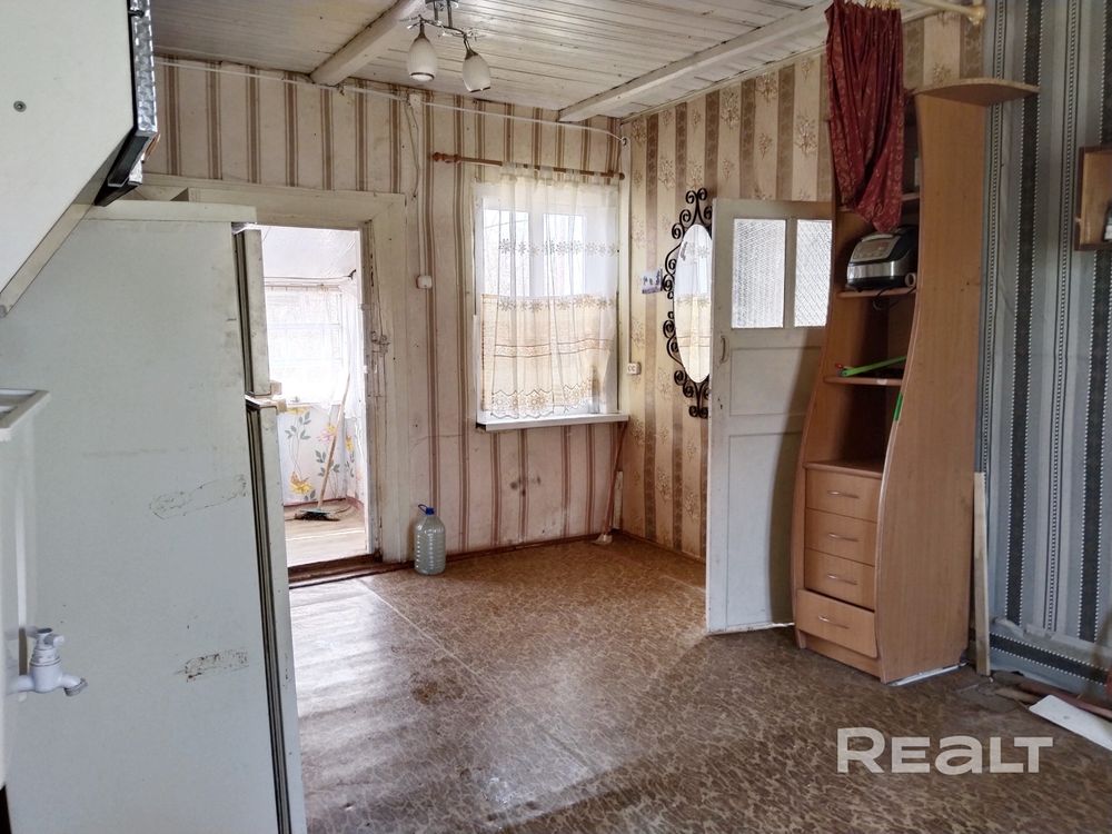 Дом деревянный, жилой, общая площадь — 32,3 м2. Планировка простая: веранда, кухня, большая комната и подсобное помещение. В доме новая печь, водопровод от собственной скважины. По улице проложен газ. Есть беседка.