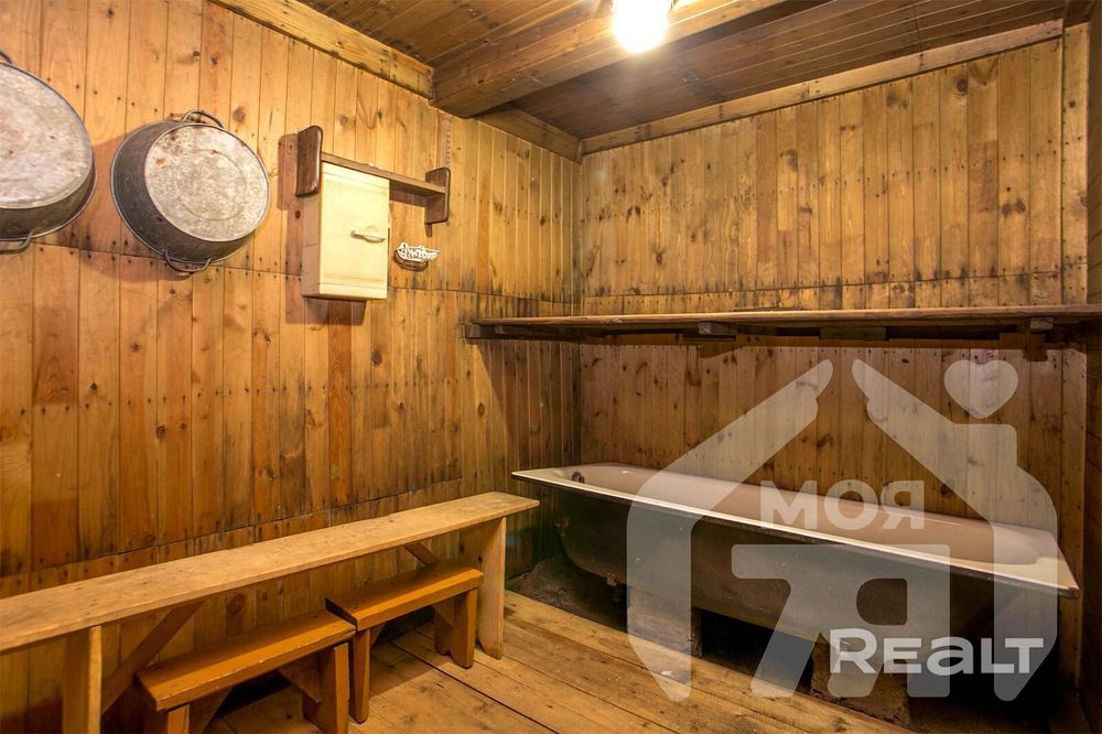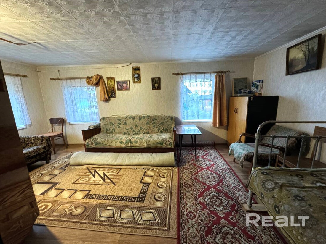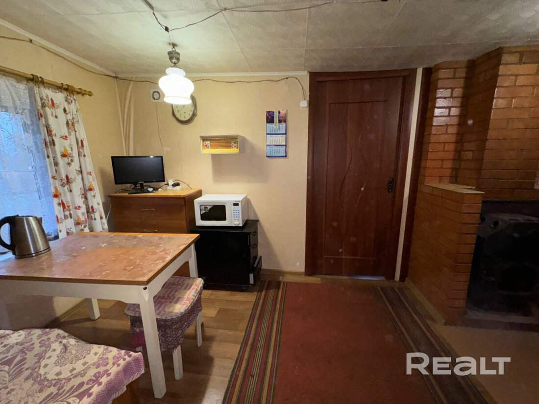Дом здесь на 69 квадратов, с одной большой комнатой и кухней. Нынешняя планировка позволяет выделить место под санузел. В 2024 году была произведена реконструкция фундамента и залито крыльцо перед домом. Продается с мебелью. В качестве бонуса останется ламинат, стиральная машина и холодильник.