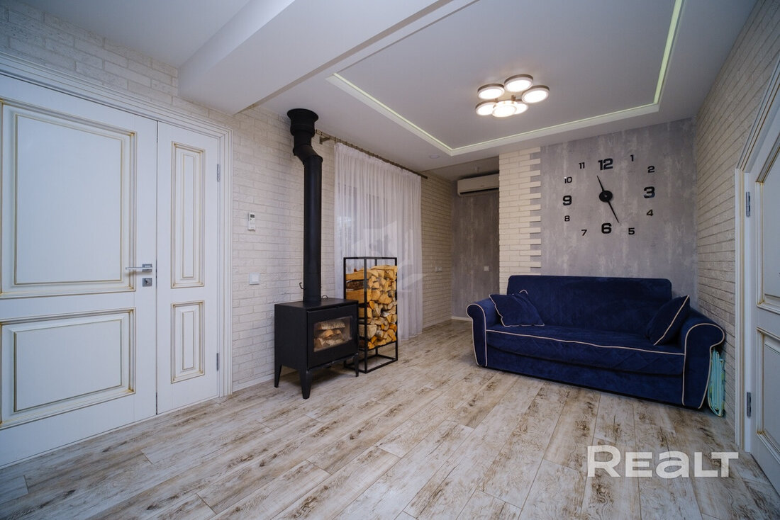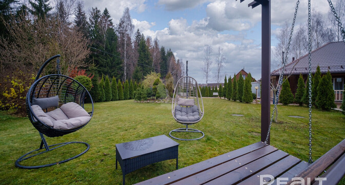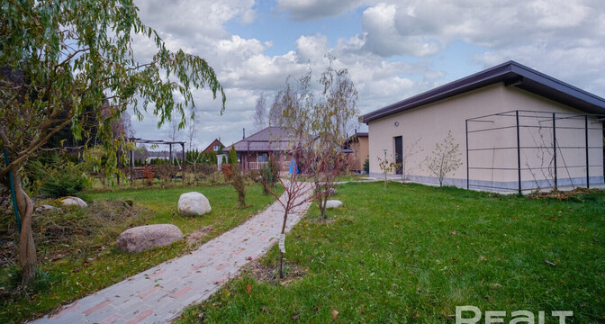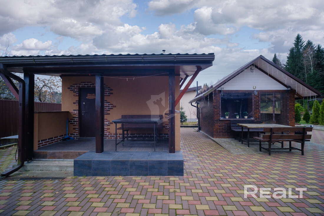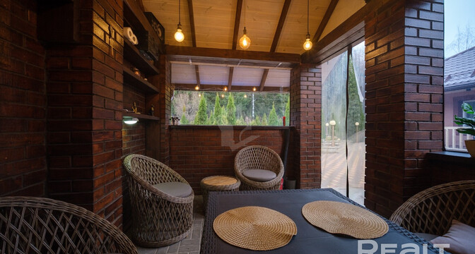 В 28 км от Минска продается готовый дом. Здесь есть не только все для жизни, но и для отдыха: комната с камином, терраса, а на участке — летняя кухня, беседка, баня и даже свой пруд. Показываем интерьер и пишем стоимость.