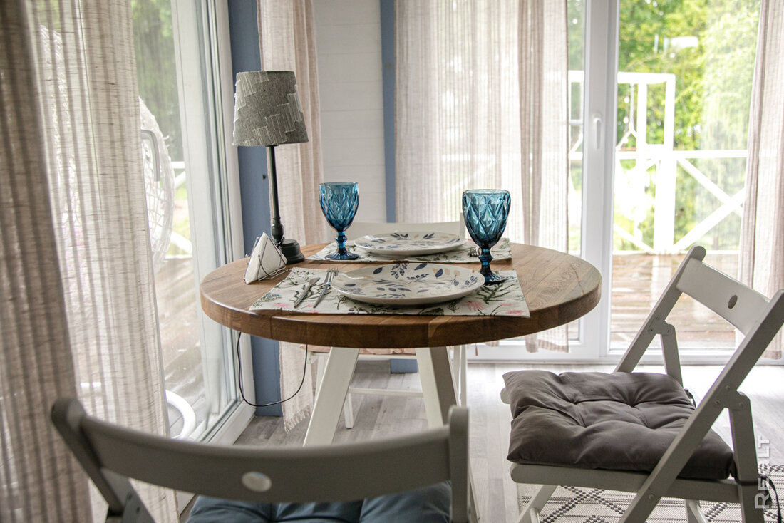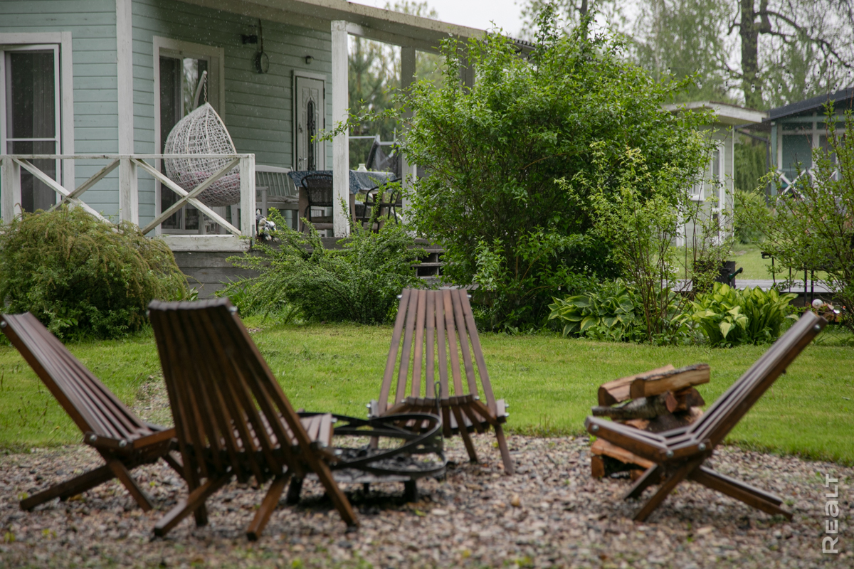 Как считает владелец усадьбы, большую роль в том, как его пространство для отдыха выглядит сегодня сыграла насмотренность и чувство стиля. «Я всегда много путешествовал, видел разные стили в интерьере. Также изучал в интернете, что актуально в странах СНГ и Европе. Могу сказать, что насмотренность — это база, которая помогает создавать что-то интересное. При этом должны быть чувство стиля, собственный вкус, без них ничего красивого не получится. Мне лично близок скандинавский стиль — уютные семейные домики на берегу моря. Вот он меня вдохновил, захотелось чего-то подобного, но в Беларуси. Оформлением занимался сам. В интерьере и экстерьере больше использовались пастельные тона, зеленые, бирюзовые. Я ориентировался на природные цвета, чтобы все гармонично смотрелось с местностью. А еще важно все делать в едином стиле, а не по остаточному принципу.