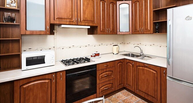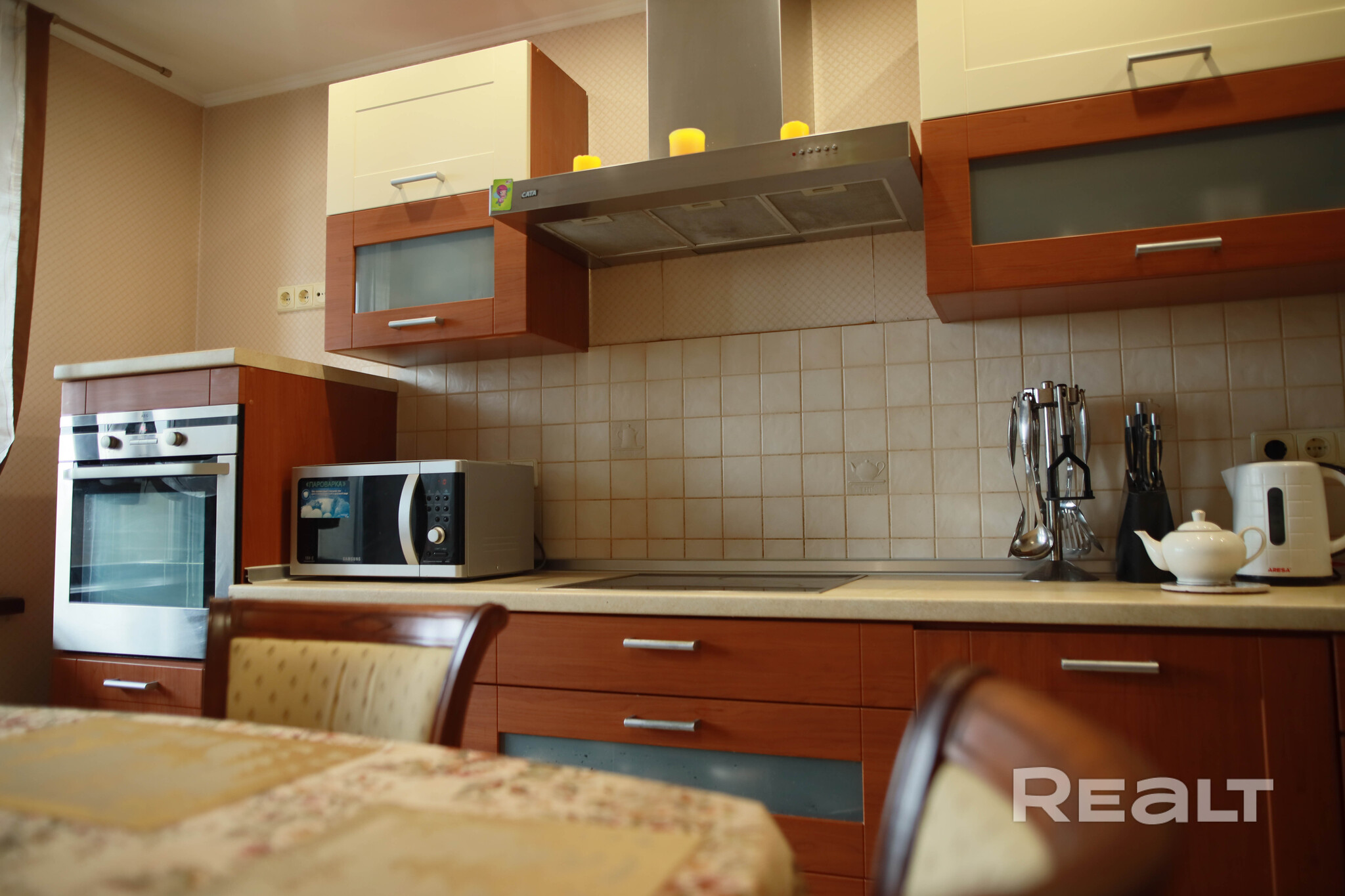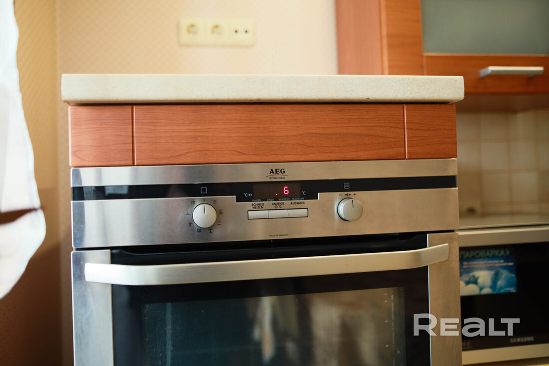 Это трехкомнатная квартира общей площадью 80 квадратов. Жилой метраж — 47 квадратов, а площадь кухни — 13 метров. В кухне из техники электропанель и духовой шкаф AEG и вытяжка САТА.