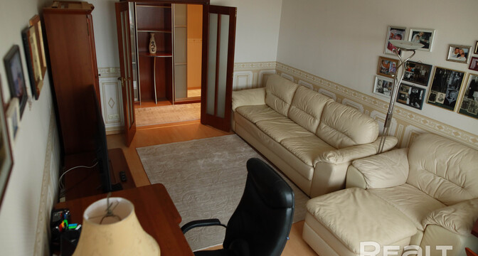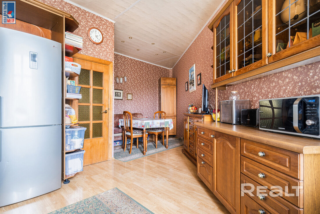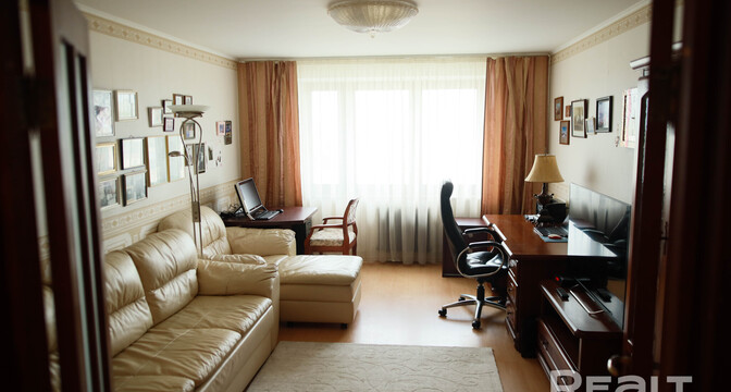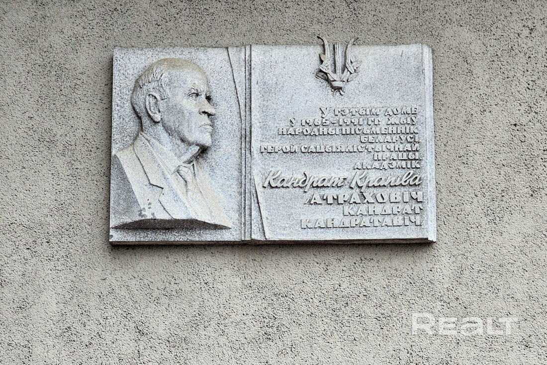 В этой девятиэтажной сталинке около станции метро «Академия наук» на первом этаже работает магазин «Кравт» и салон светильников, а на фасаде — мемориальная доска в честь белорусского писателя Кондрата Крапивы. Он жил с семьей в этой девятиэтажке на третьем этаже с середины 60-х.