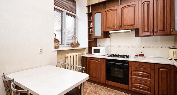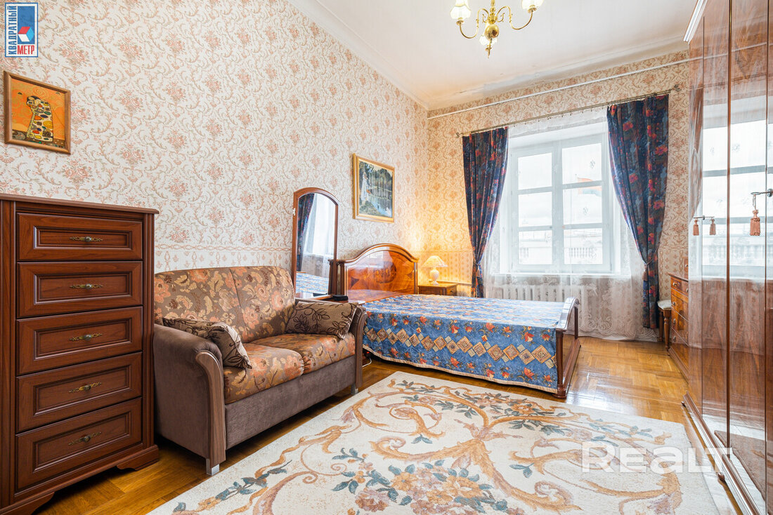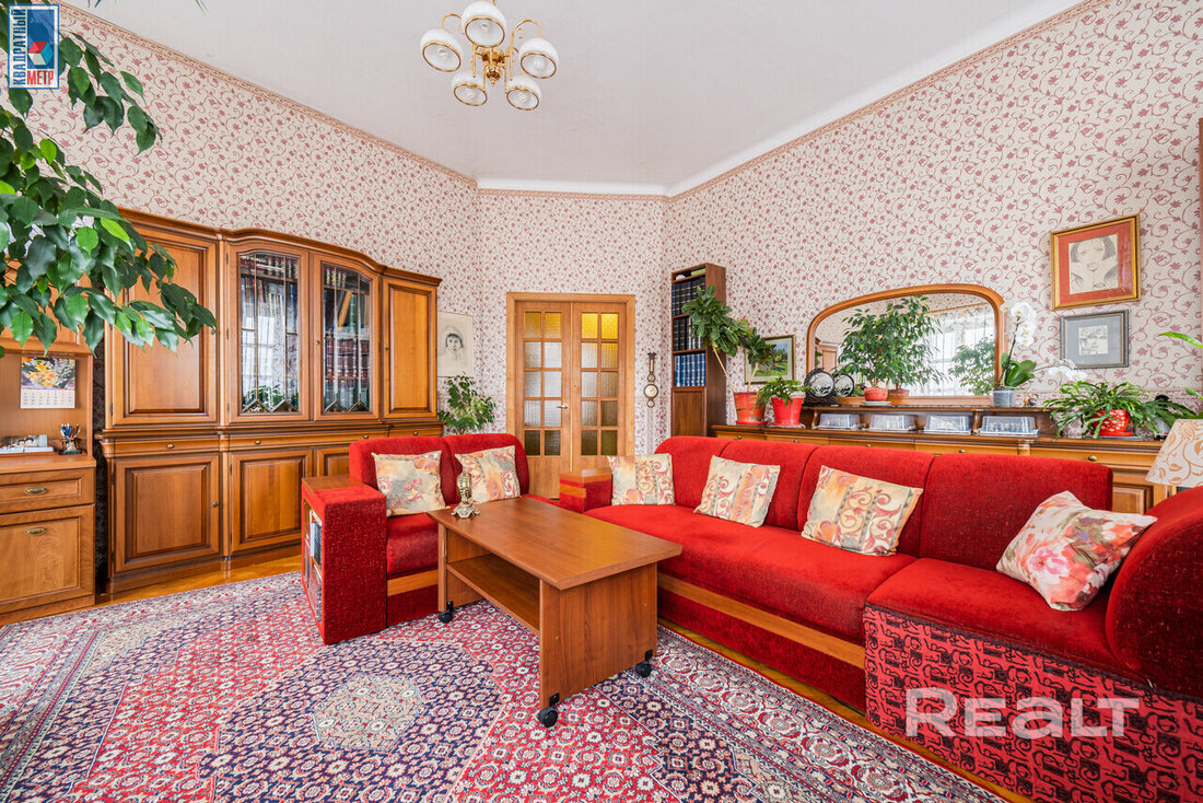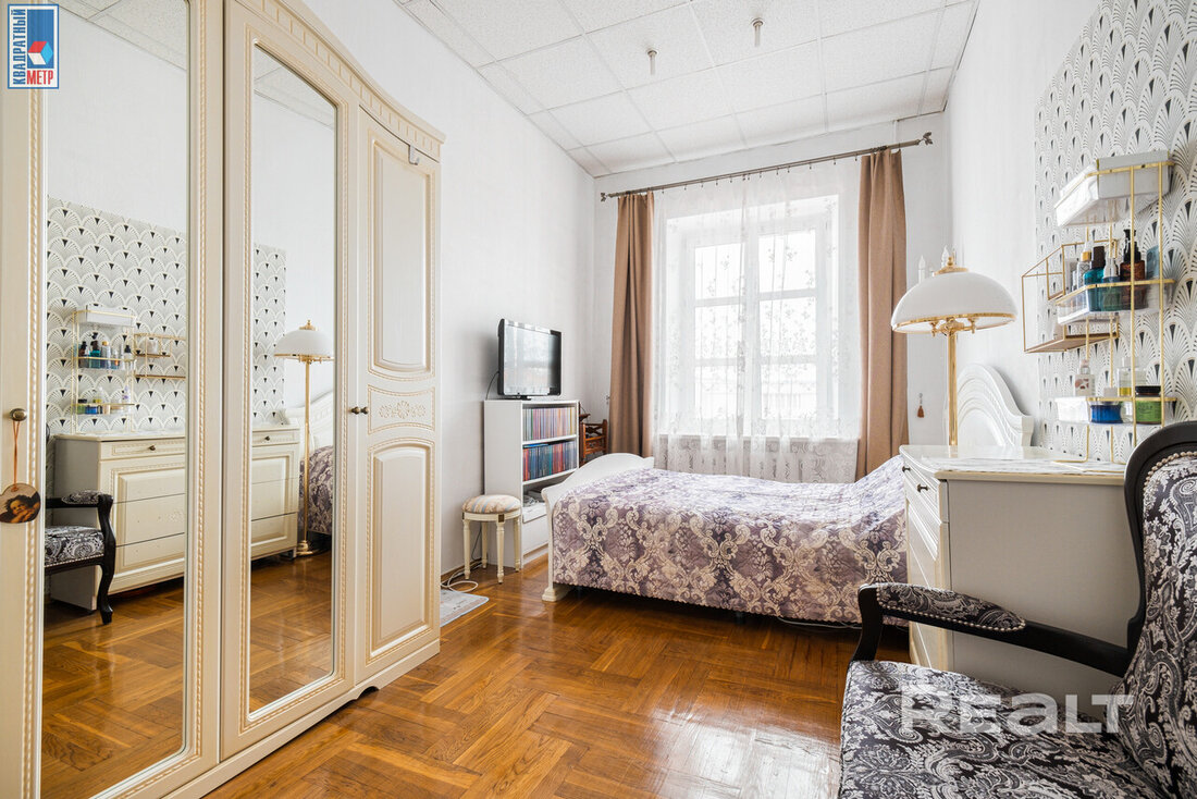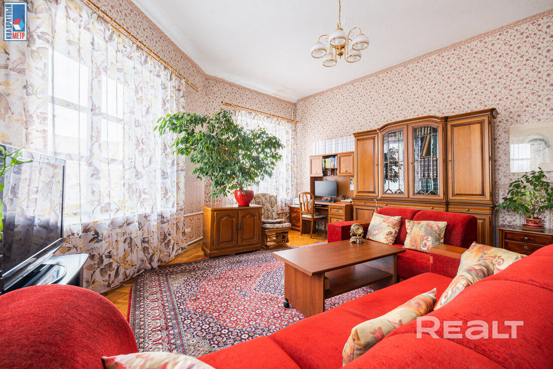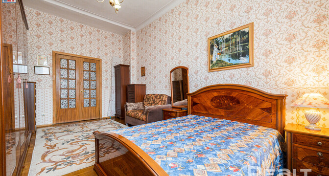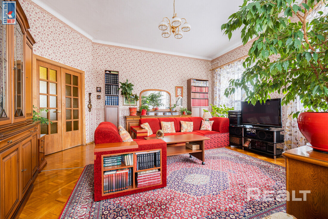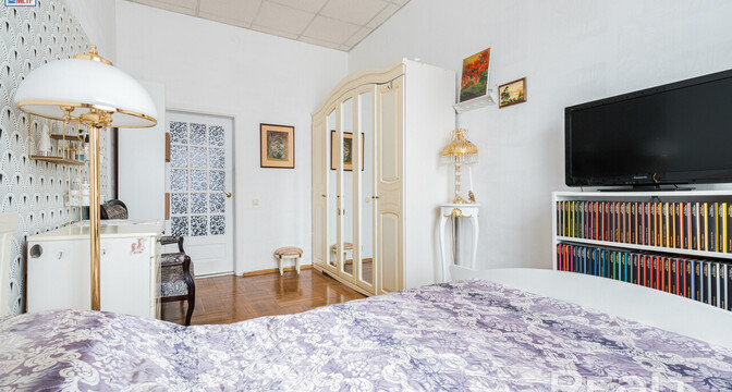 Сейчас в писательском доме продается одна квартира — двушка на втором этаже. Ее общая площадь — 57 квадратов, а жилая — 39. Ремонт в квартире выполнен в классическом стиле. Жилые комнаты — спальня и гостиная. Санузел совмещенный. Установлена ванна и подключена стиральная машина. Потолки в этой двушке — 3,2 метра.
