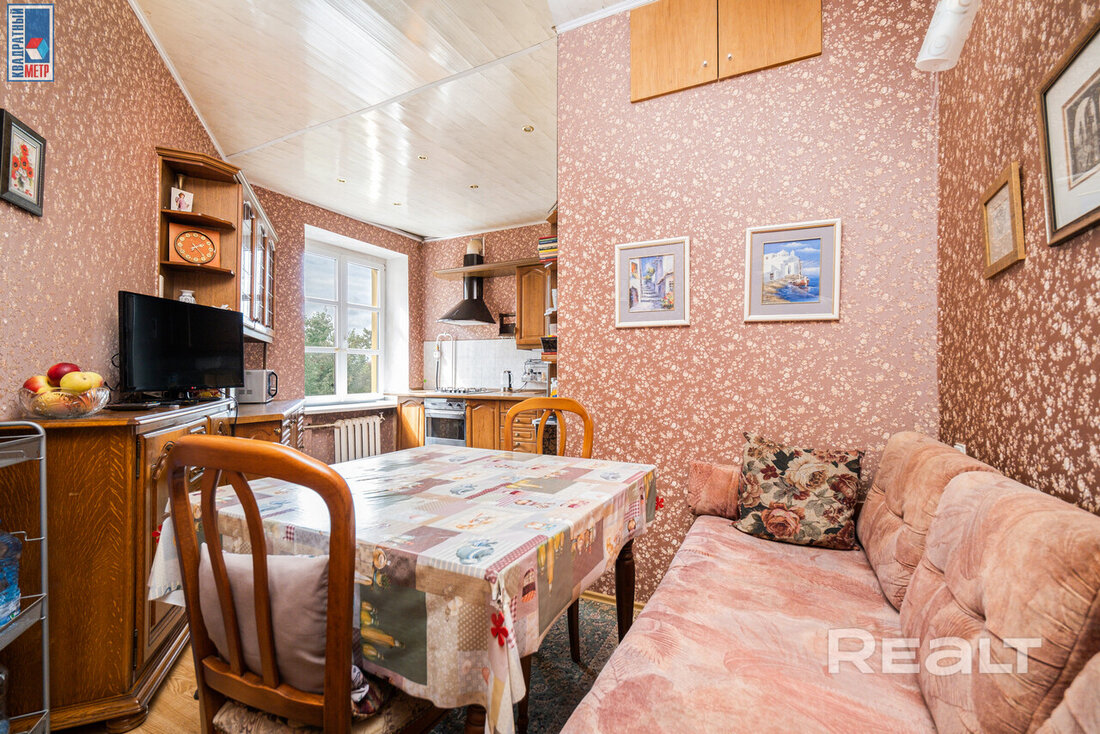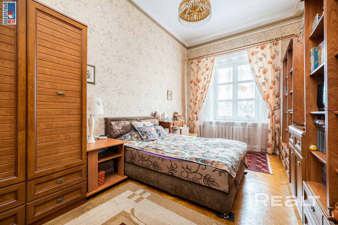 Сейчас в этом доме продается квартира, по которой можно изучать, как раньше жила интеллигенция. Находится она на пятом этаже. В квартире четыре комнаты и 130 квадратов общей площади, а чуть больше 80 метров — жилые. Кроме того, что в квартире большой метраж, здесь еще и очень нестандартная планировка. Посмотрите хотя бы на кухню трапециевидной формы.