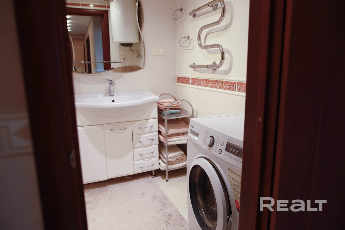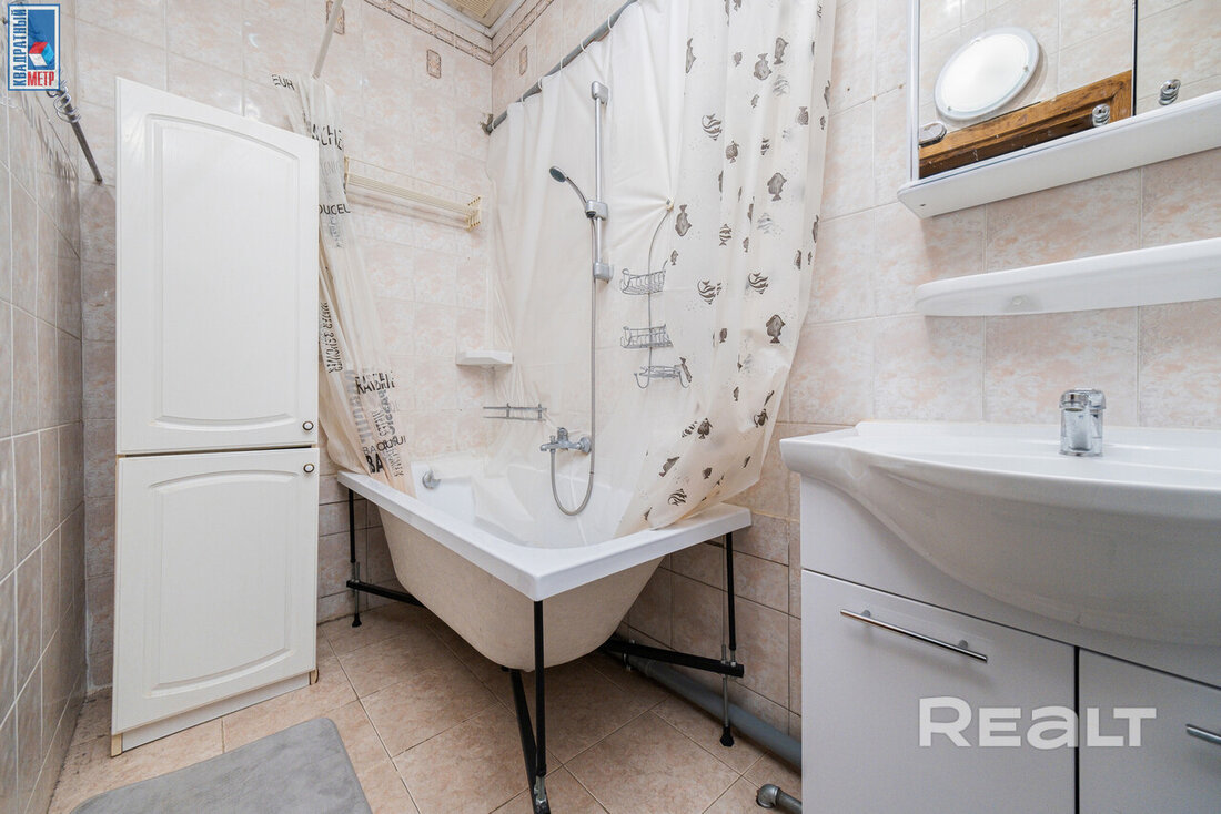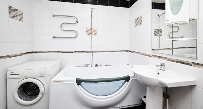 Санузел здесь раздельный. Установлена ванна и стиральная машина.