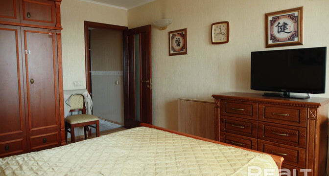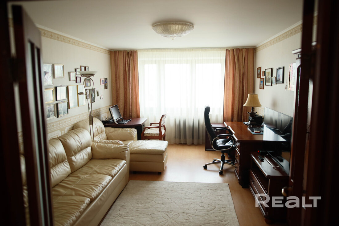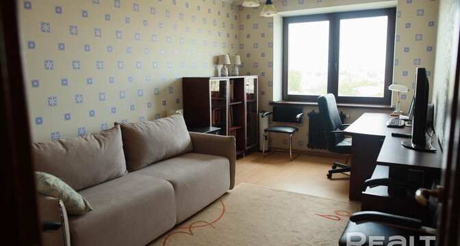 Жилые комнаты — спальня, кабинет и гостиная. Есть лоджия и балкон. Санузел раздельный. Есть гардеробная.