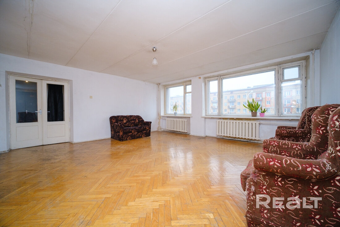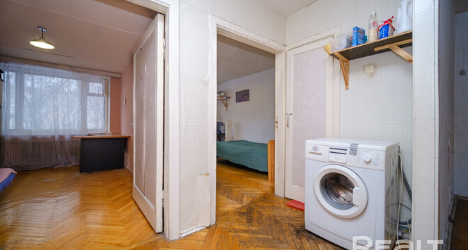Самый молодой дом из подборки — 14-этажка 2004 года постройки по адресу Захарова, 50 В. С 2005 до 2021 года здесь, на 12-м этаже, жил белорусский дирижер Михаил Финберг. Сейчас в этом доме продается три квартиры — от 176 до 320 тысяч долларов. Мы посмотрим самую дешевую из них.