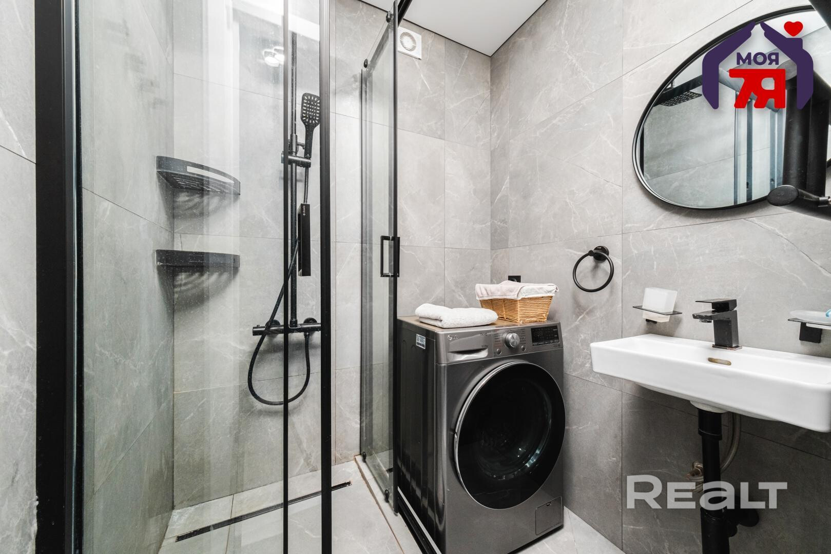 Санузел раздельный. Установлена душевая, подключена стиральная машина.