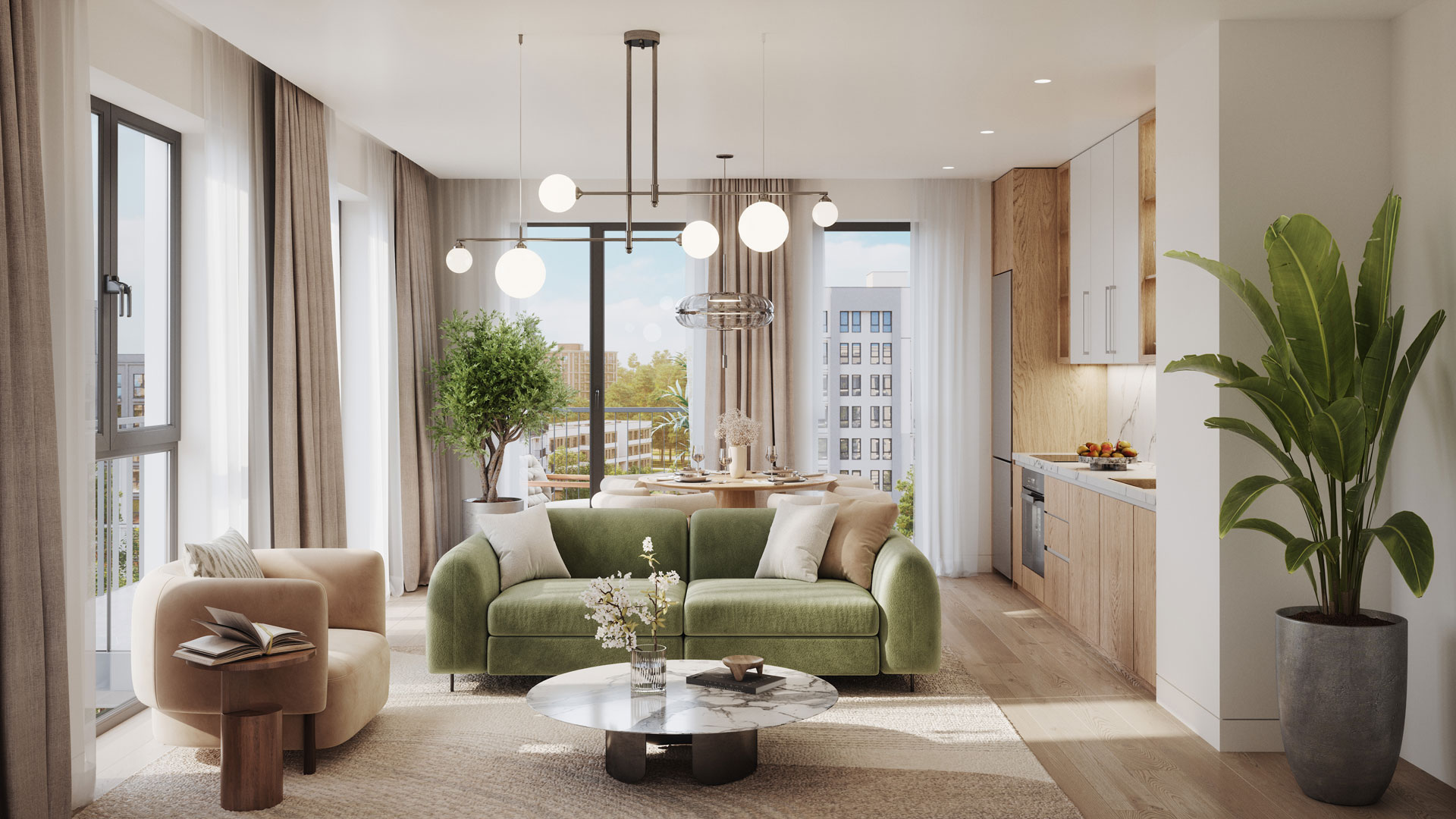 Особенность дома — готовые квартиры. Жилье в «Бельмонт 2» будет сдаваться с полностью готовой отделкой и даже встроенной мебелью. В зоне готовки появится современная кухня, оснащенная smart-подсветкой и столешницей из широкоформатного керамогранита, а в санузлах установят подвесную сантехнику. Для поддержания комфортного микроклимата в каждой комнате будет кондиционер.