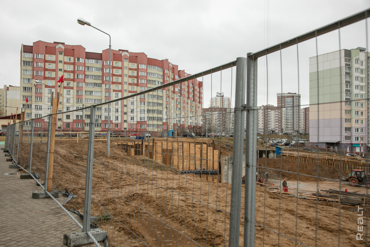 Неэксплуатируемые конструкции паркинга были снесены, а с лета прошлого года на расчищенной территории по заказу УКС «Запад» стал работать «Минскстрой». Учитывая холмистый рельеф, работы по устройству нового котлована велись несколько месяцев. В марте мы показывали подпорную стену и основание будущего монолитно-каркасного дома.