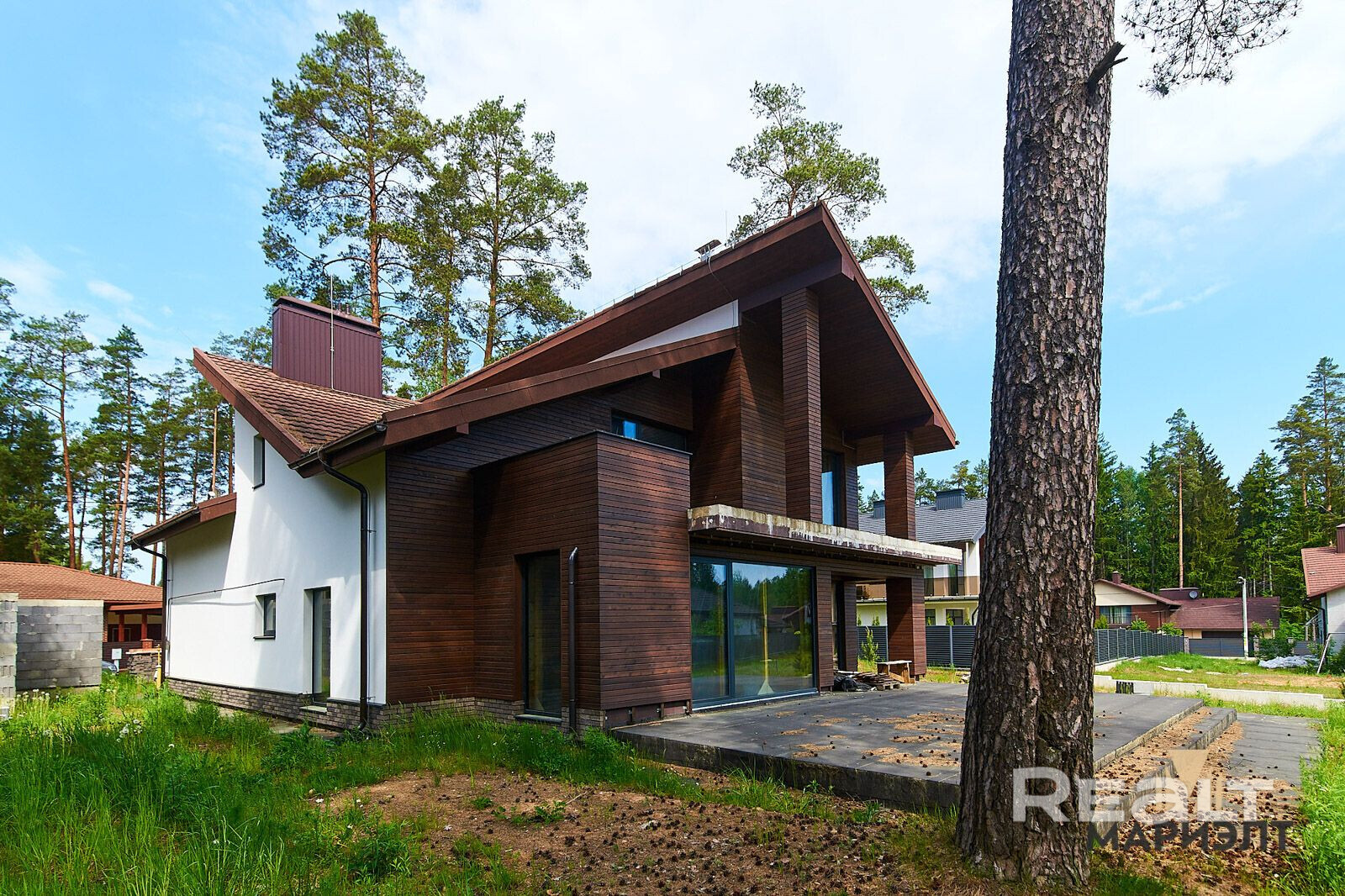 Если нужно что-то более просторное и с современной архитектурой, то можно обратить на дом на 185,4 м2 под отделку.