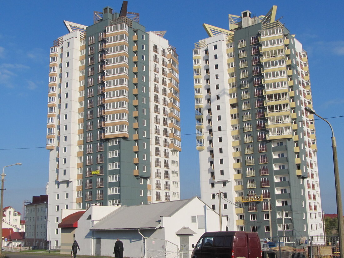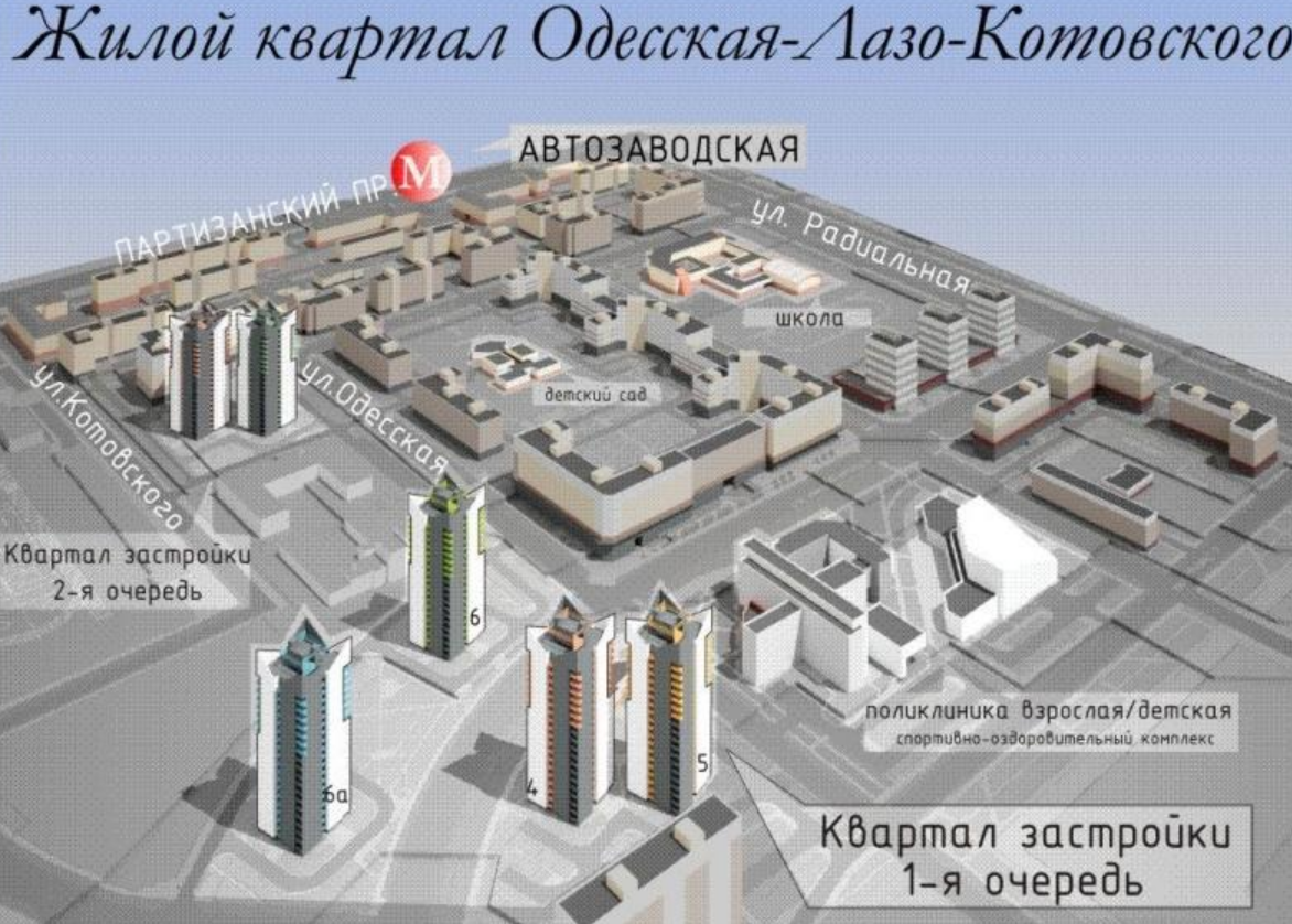 Интересно, что на старых рендерах (за 2010 год) жилой комплекс окружают другие многоэтажки. По факту же высотки «Одесского» пока остаются единственными многоквартирными зданиями в квартале. Двухэтажки и частные дома в округе так никто и не тронул.