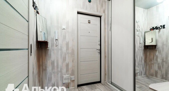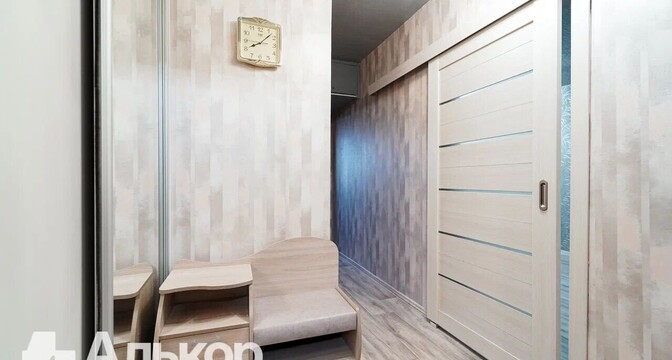 Общая площадь — 36 квадратов, 17 из них жилые. Метраж кухни — 7 квадратов. В коридоре установлен вместительный шкаф-купе. В гостиной есть выход на застекленную лоджию. Санузел в квартире раздельный. Установлена душевая.