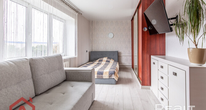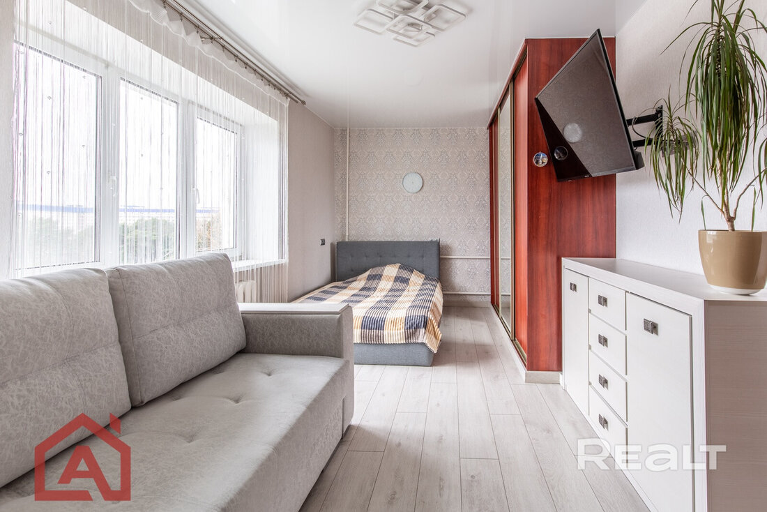 Однокомнатная квартира на проспекте газеты «Звязда», 56. Расположена на седьмом этаже девятиэтажной панельки 1991 года.