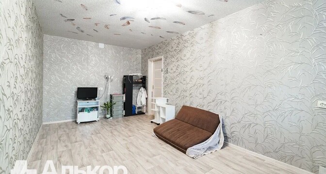 Общая площадь квартиры — 30 квадратов, 16 из них жилые. Площадь кухни — 6 метров. Квартира светлая. В коридоре установлен шкаф-купе. В гостиной стоит кровать и диван. В совмещенном санузле установлена душевая кабина.