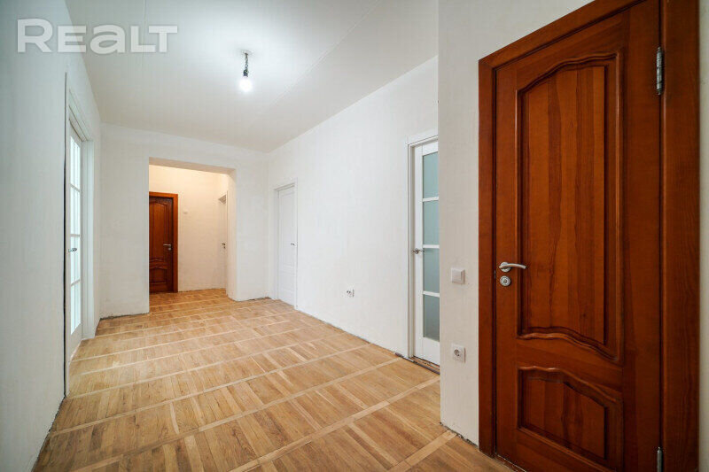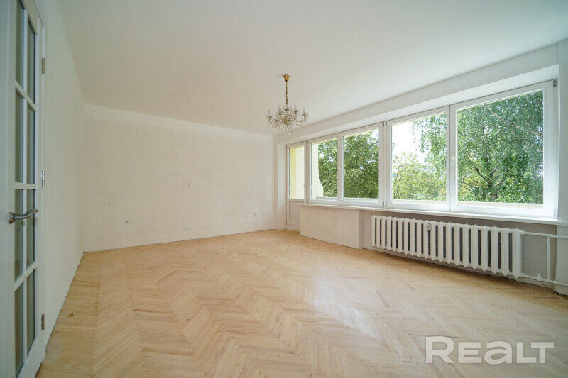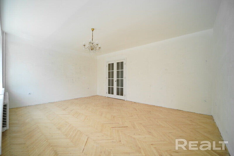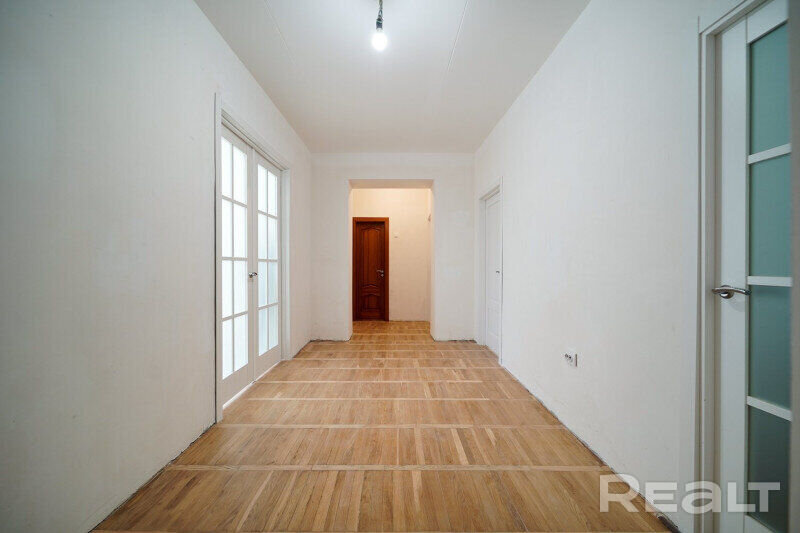 Дома на улице Сурганова под номерами 40, 42 и 44 строили в 1970-х для минской интеллигенции. В основном, квартиры там получили художники. В этом же комплексе из трех домов располагаются и мастерские. То, что это дома для художников, заметно даже по планировкам. Там широкие лестничные проемы, чтобы можно было пронести холст любого формата. А в квартирах большие окна, чтобы попадало больше света. Посмотрим на примере четырехкомнатной квартиры, выставленной на продажу.