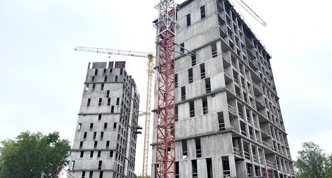 На первой многоэтажке уже монтируются вертикали 16-го этажа.