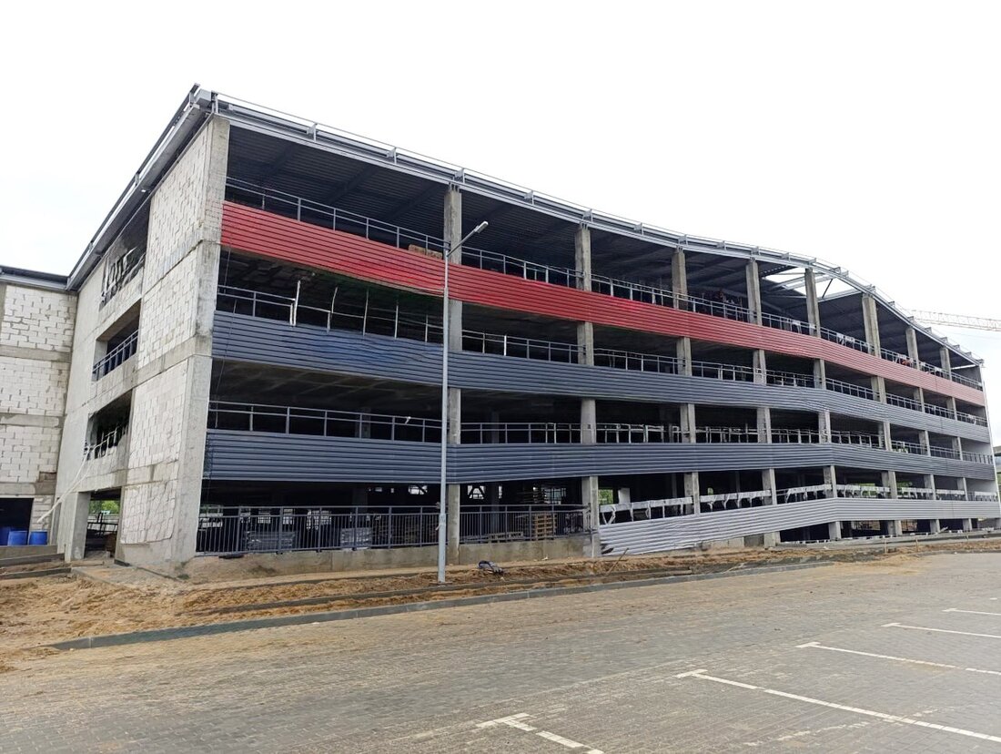 Рядом с домами строятся два вместительных четырехуровневых паркинга — на 292 машино-места каждый. Первый почти готов, его также сдадут в этом месяце.