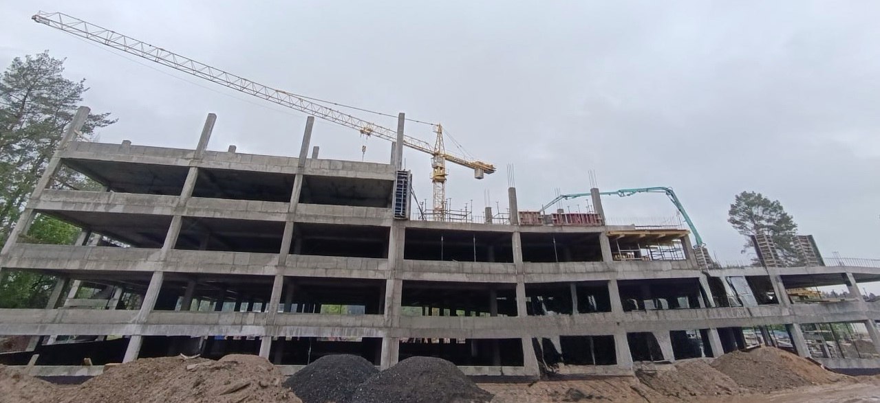 По соседству завершается монтаж коробки еще одного «столбика» — жилого дома № 5. Впереди — закрытие контура, электромонтажные, сантехнические работы и отделка.